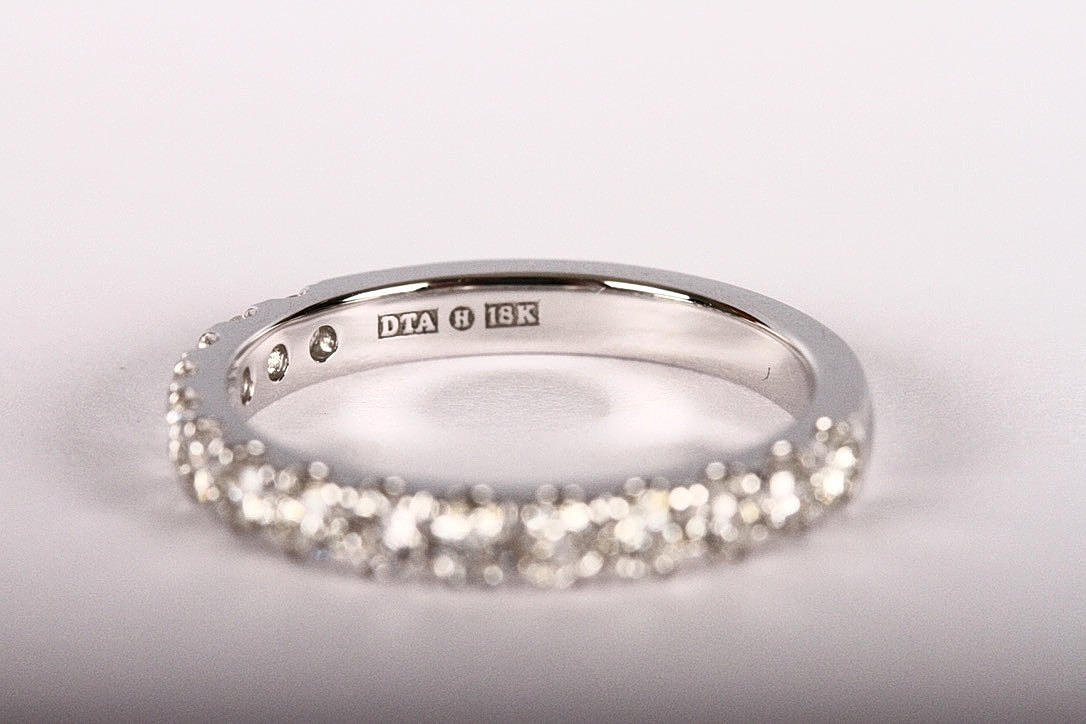 Set with 15 brilliant cut diamonds totalling 0,69ct approx Wesselton-Top Wesselton/VS-SI, weight 3,1 grams, size 52.