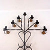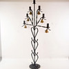 Seven-armed floor candlestick in wrought iron, hung with 6 bells. Height 100 cm, width 60 cm, lower diameter 17 cm.