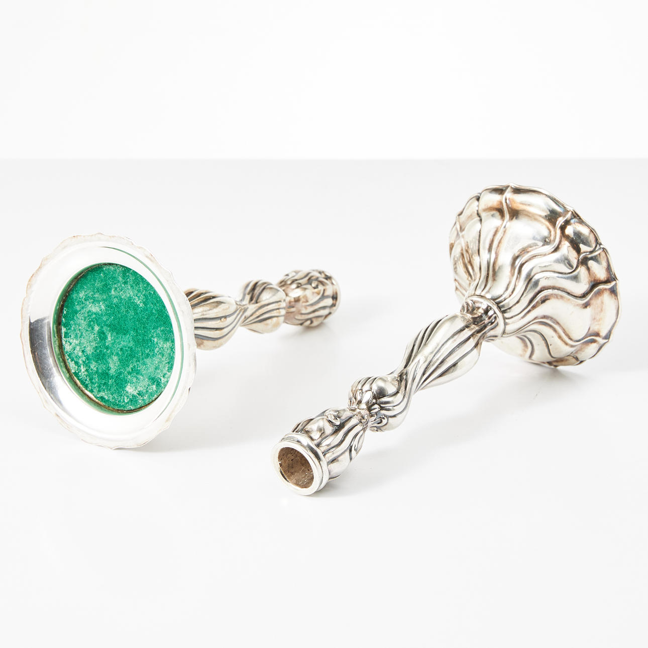CANDLESTICKS, 1 pair, silver, rococo style.