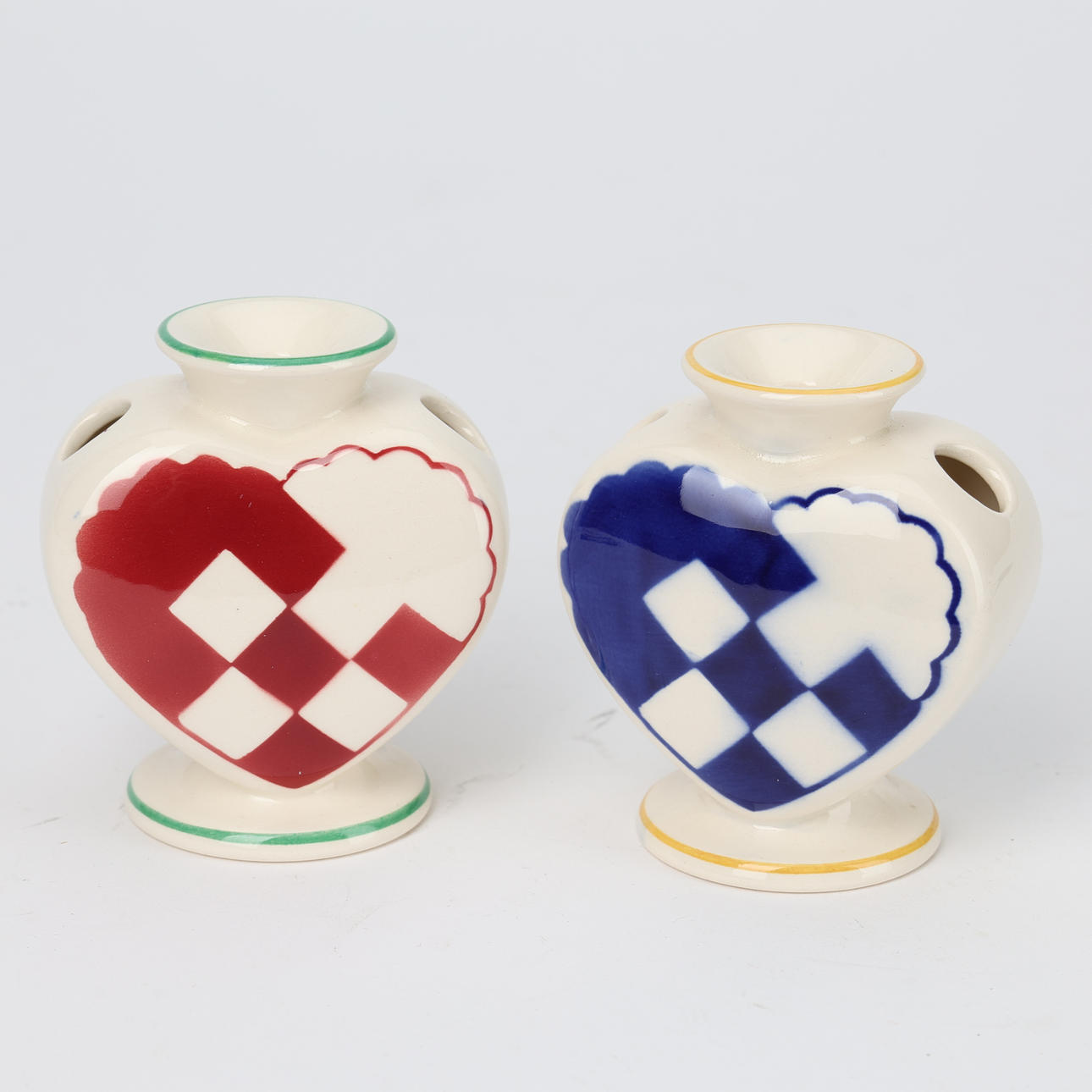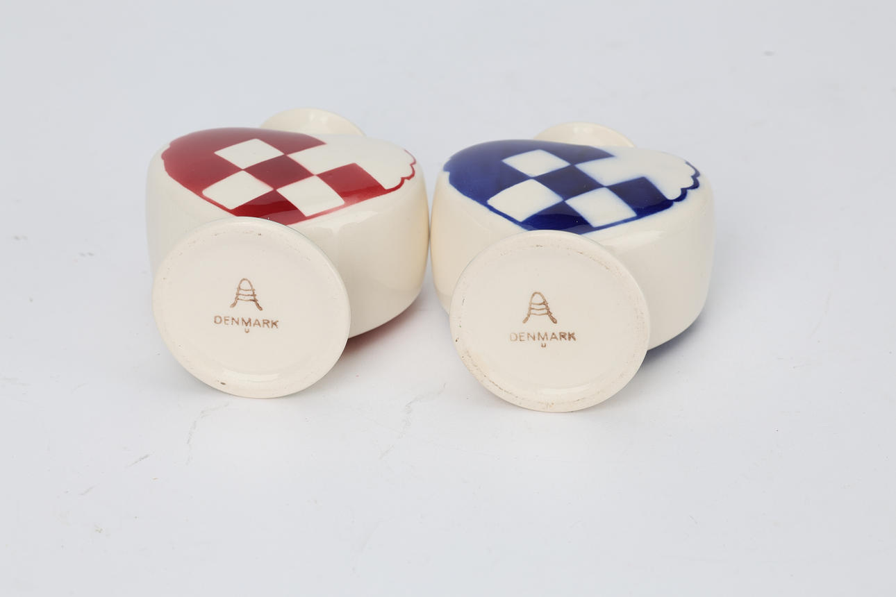 Red and green, as well as blue and yellow decor. In the form of a heart. Height 7.5 cm.