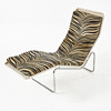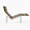 Upholstered in zebra pattern velvet fabric, frame made of chrome-plated steel, length approx. 160, height 96 cm.
