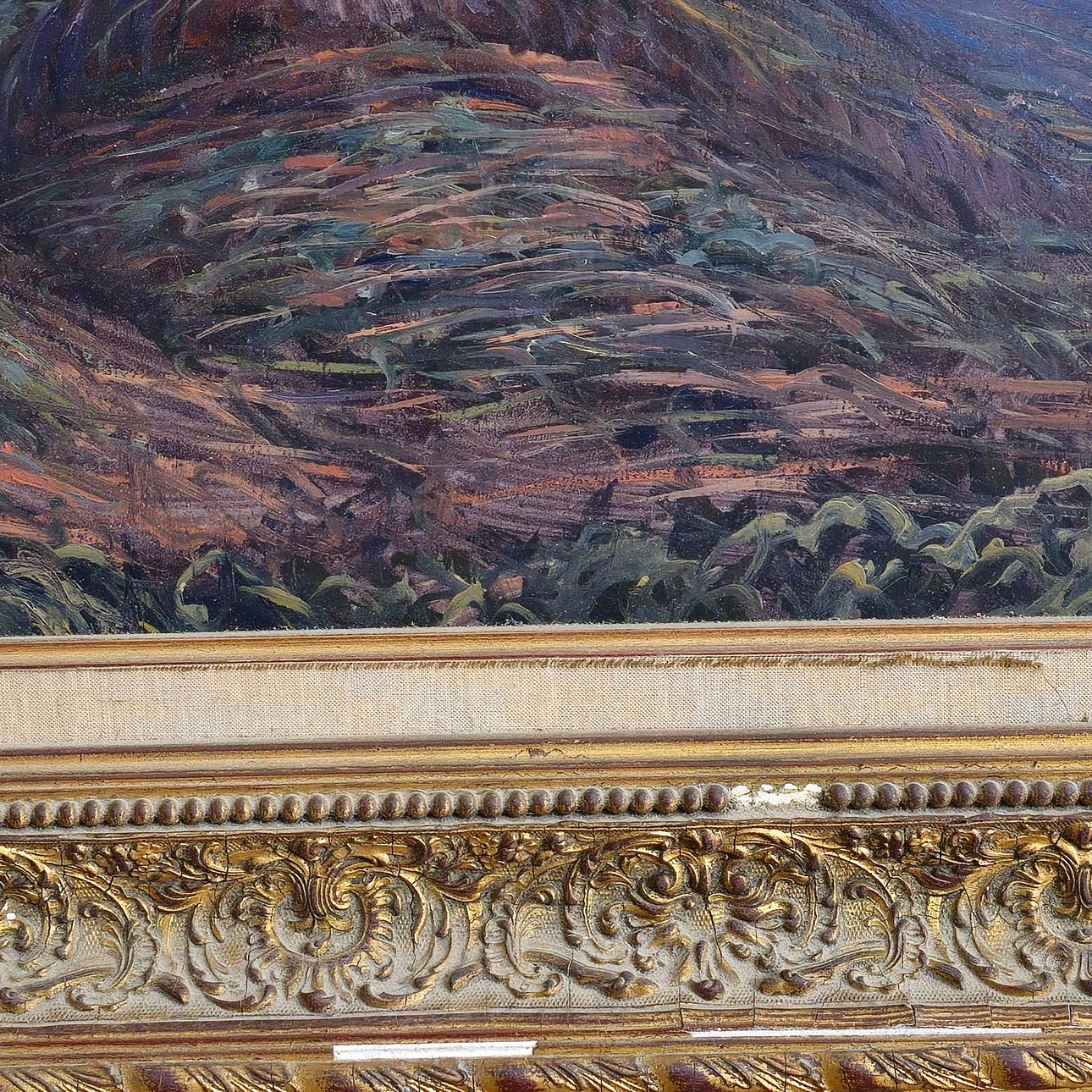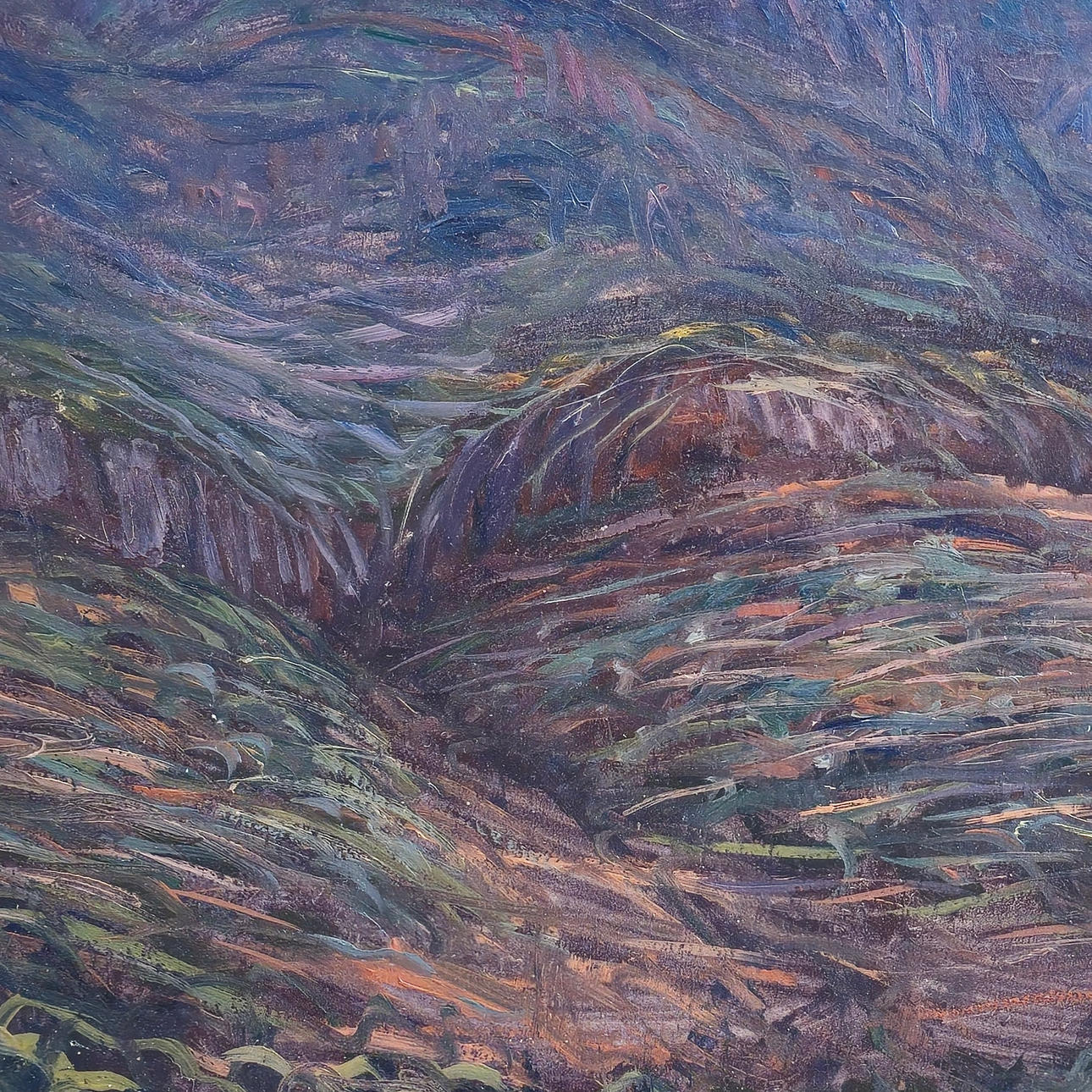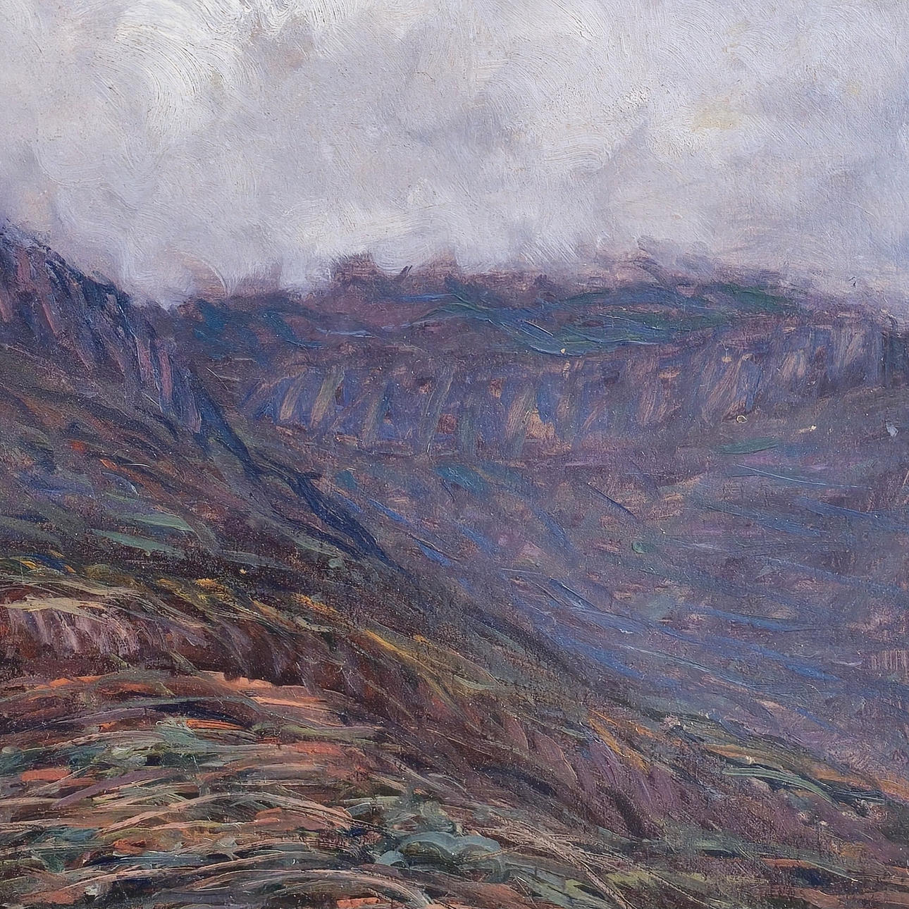 4266294. OIL, CANVAS, UNSIGNED MOUNTAIN LANDSCAPE.