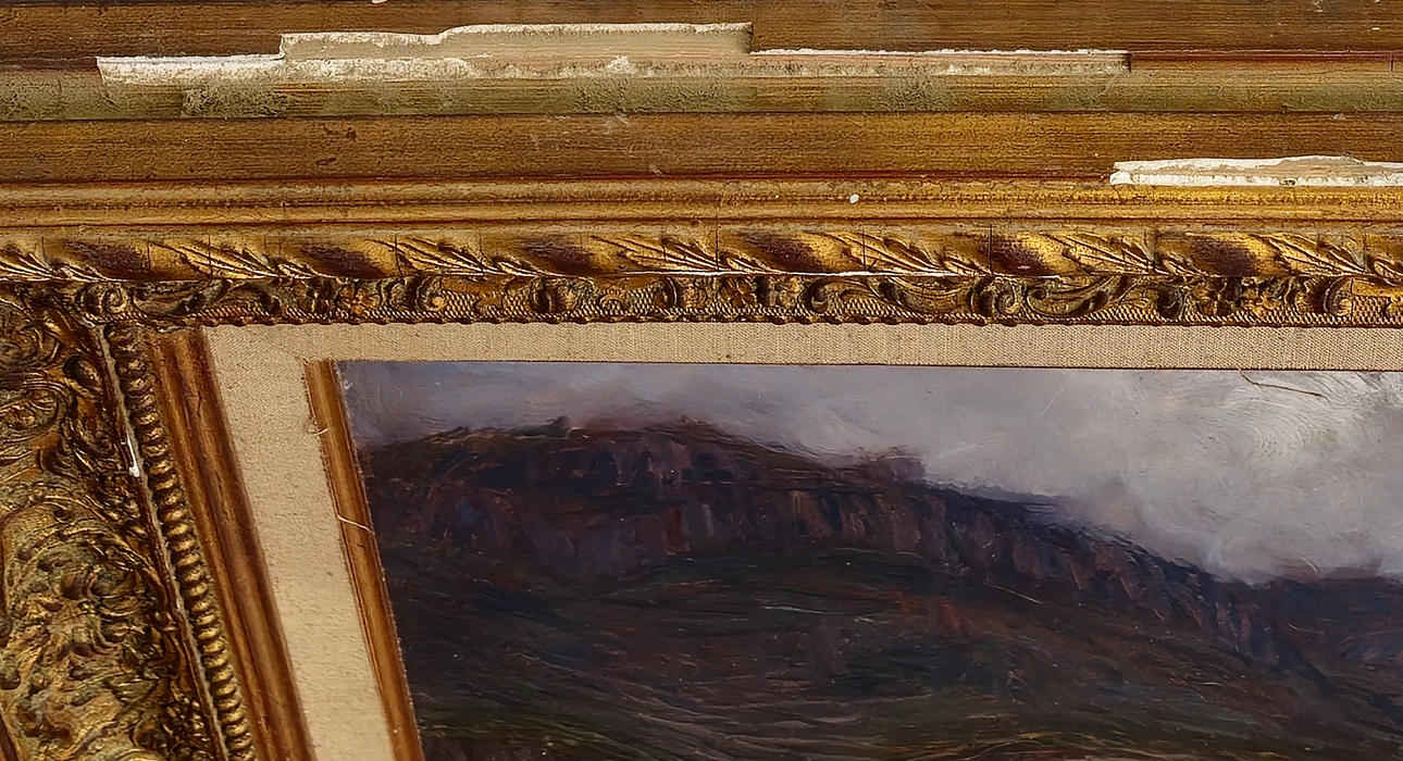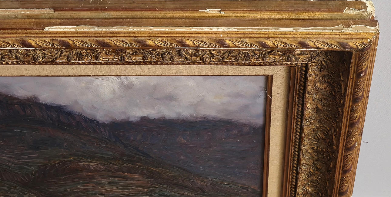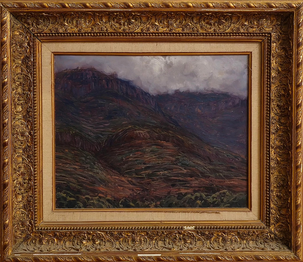 4266294. OIL, CANVAS, UNSIGNED MOUNTAIN LANDSCAPE.
