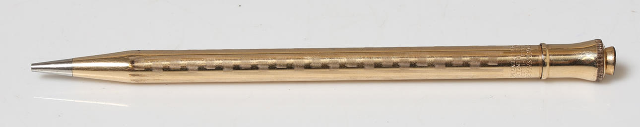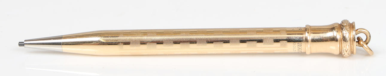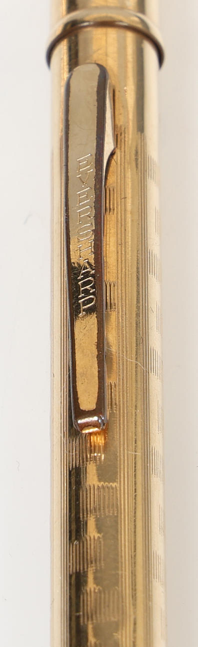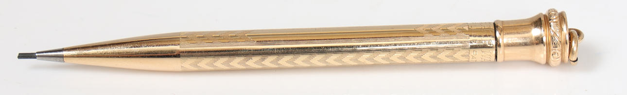 Two with Greek key decoration, all marked 'Eversharp, Gold Filled, Made in England', 13.5cm long, 10.2cm long and 8.2cm long (3).