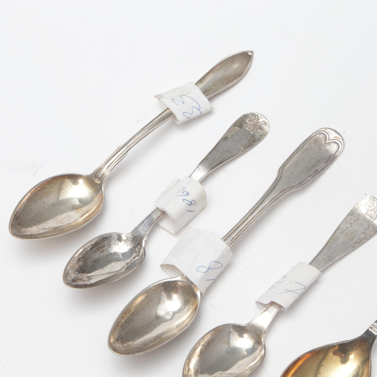 COLLECTION COFFEE SPOONS, 6 pcs, different varieties, antique.