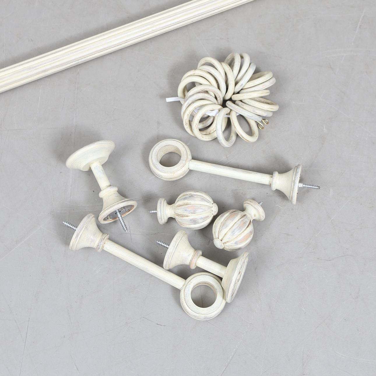 Rod, various decor parts as well as rings.