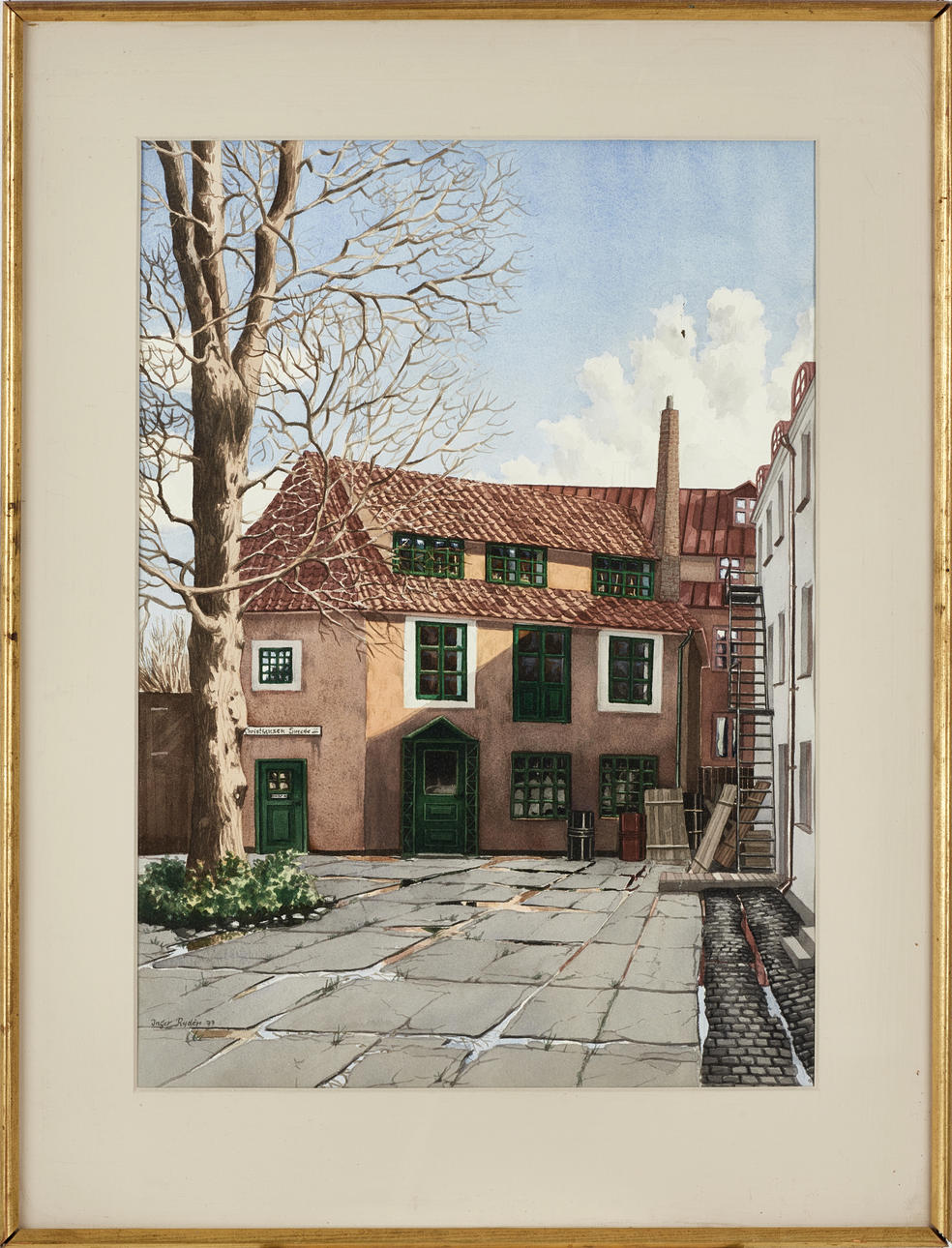 4269402. INGER RYDÉN (born 1944): Backyard, signed Inger Rydén -77, gouache.
