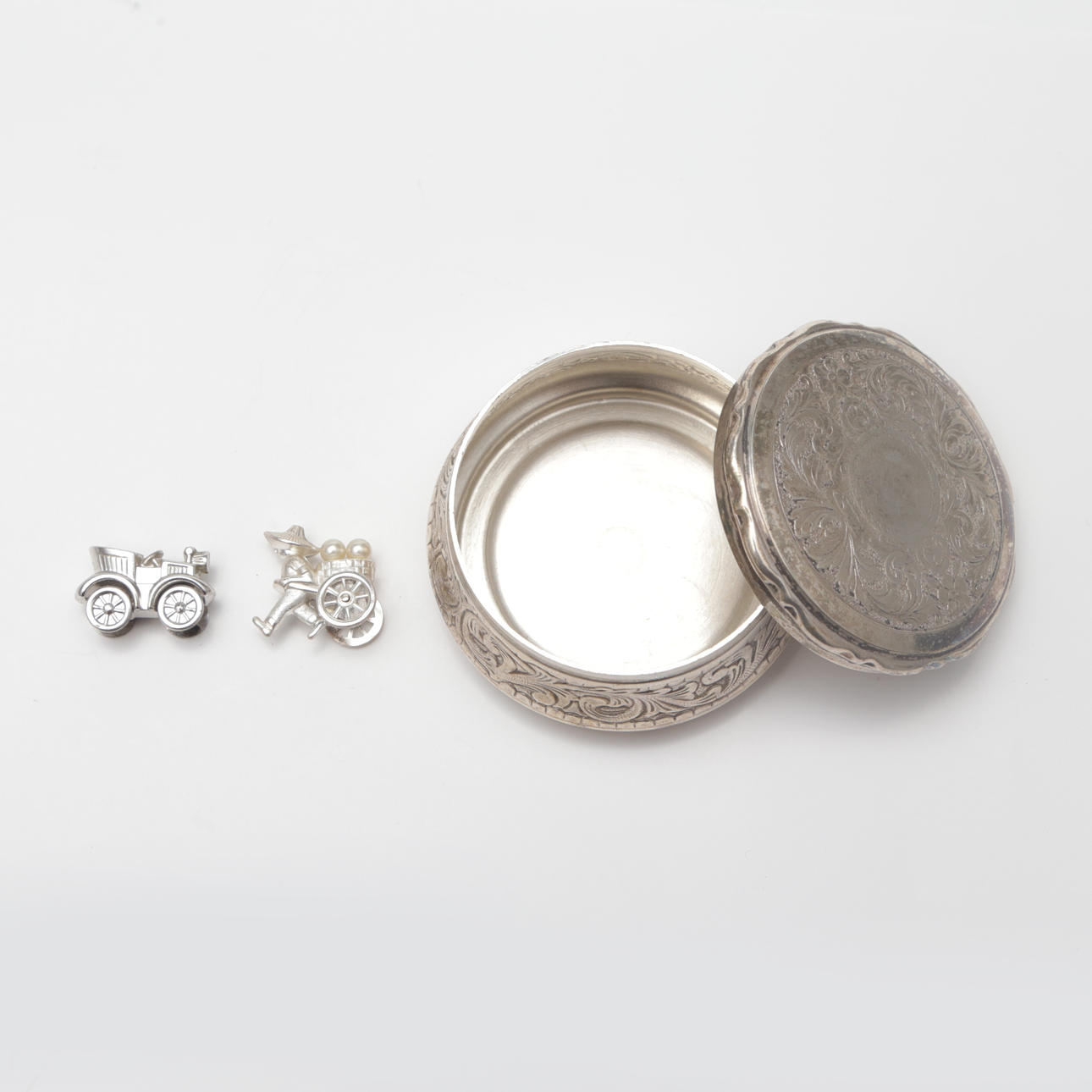 BOX AND, MINIFIGURES 2 pcs, new silver/metal.