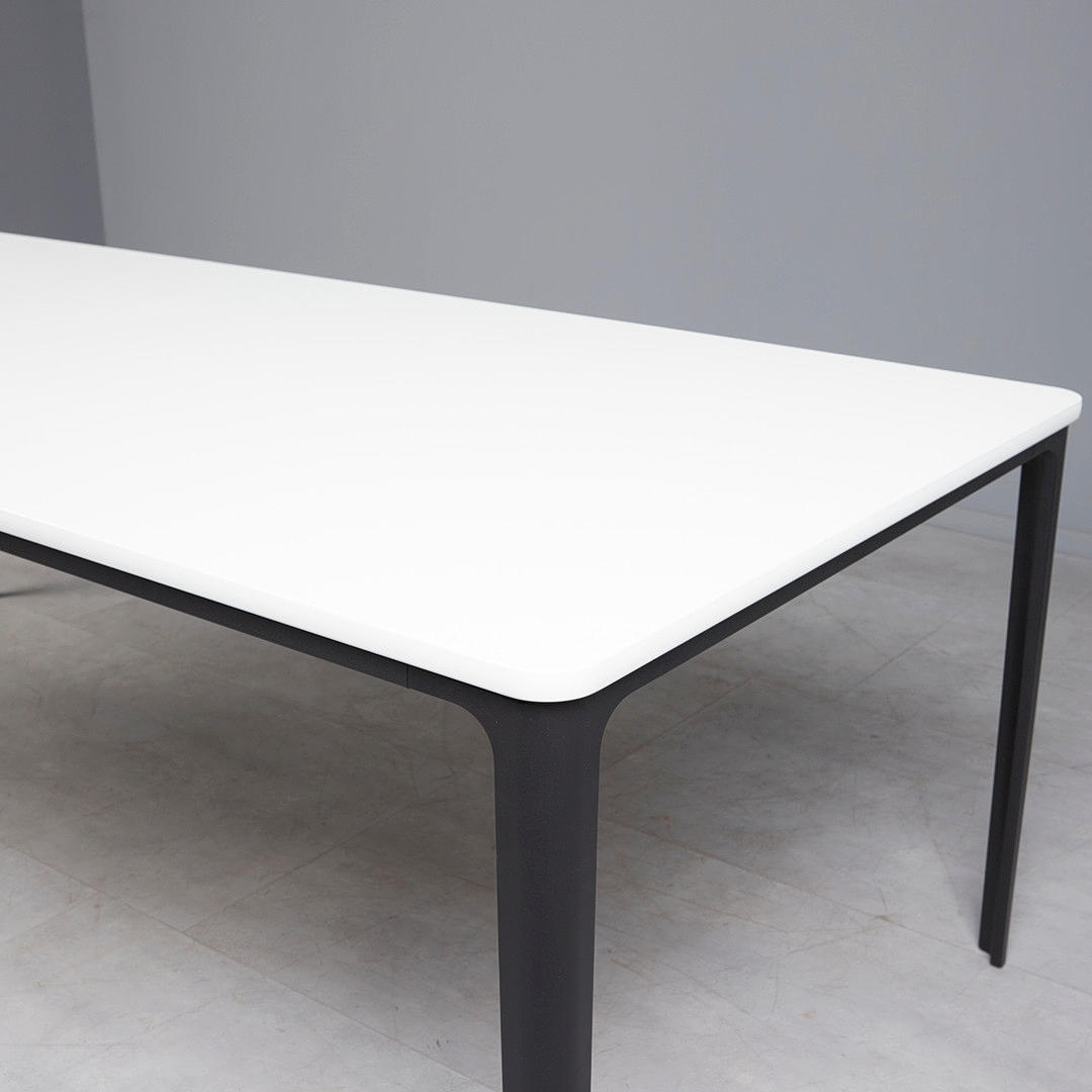 Dining table with a black lacquered die-cast aluminum frame and a white lacquered oak table top, with manufacturer's name on the underside, H.74cm, L.220cm, W.100cm.
