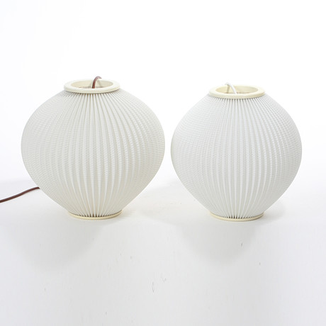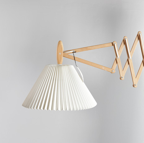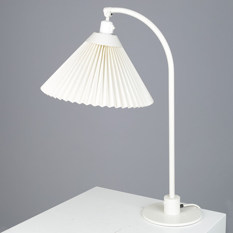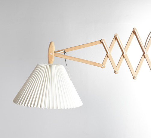 Philip Bro Ludvigsen for Le Klint, model 340, floor lamp/telescope lamp with pleated Le Klint screen, frame of lacquered brass, H. 103-157 cm. Screen diameter approx. 40 cm.