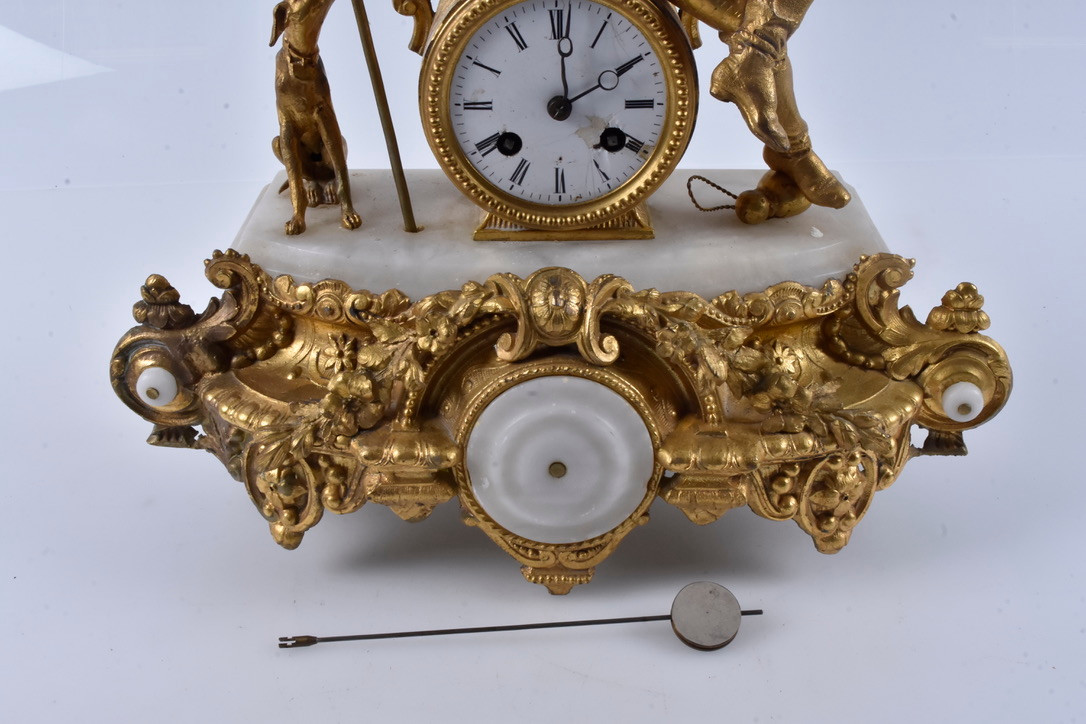 4272650. A 20th century yellow metal table clock.