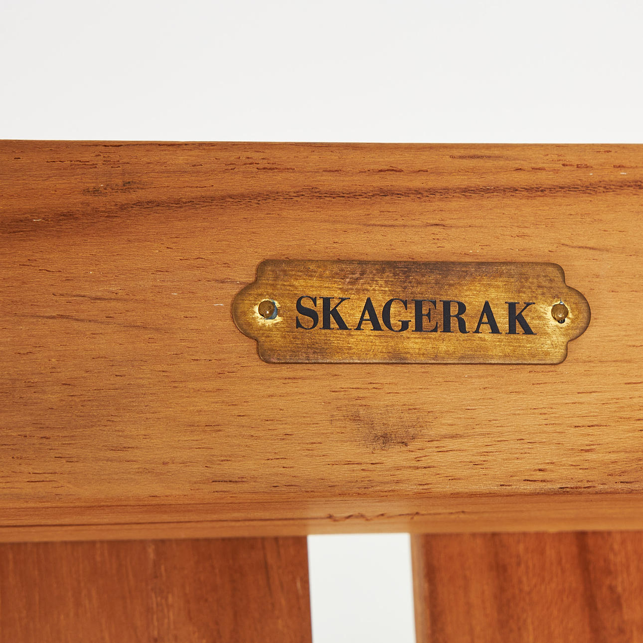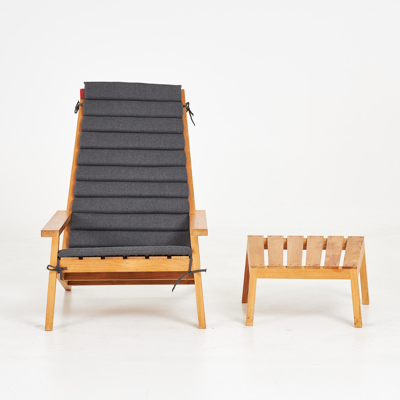 4273908. SKAGERAK, 2 dlr., deck chair “Between Lines”, with footstool, design Stine Weigelt, teak, dark gray cushion, branded with tiles.
