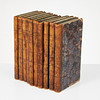 Worn tapes, 2 title leaves missing, occasional stains, some pages in band 5 badly stained. One of the plank bands with sunny and mottled cover leaves.