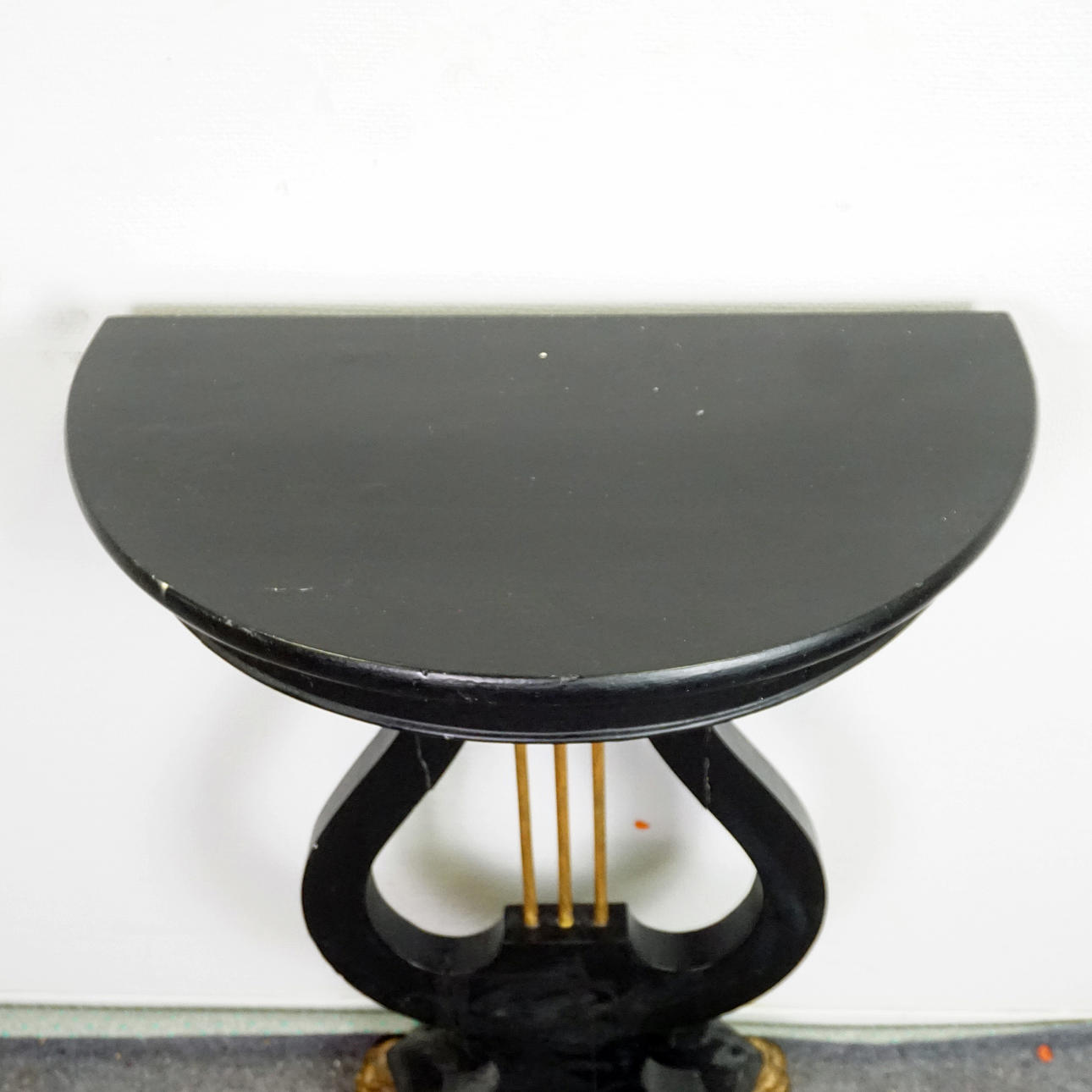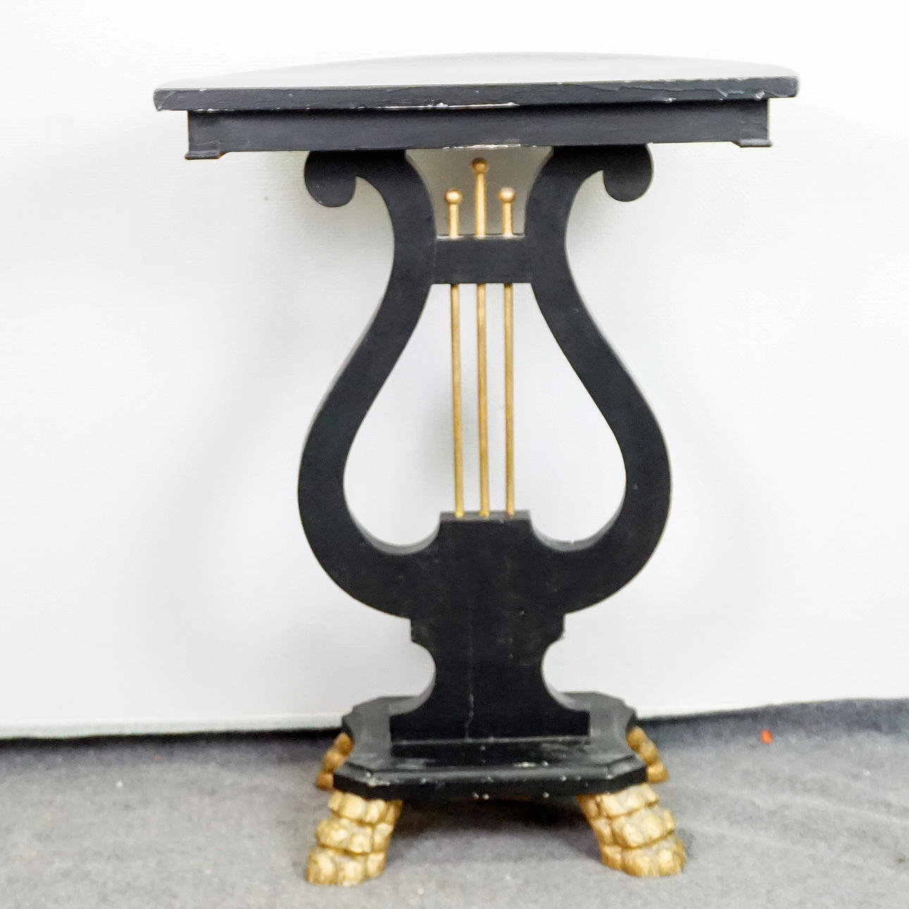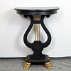 Crescent shaped lyre table with lion paws.