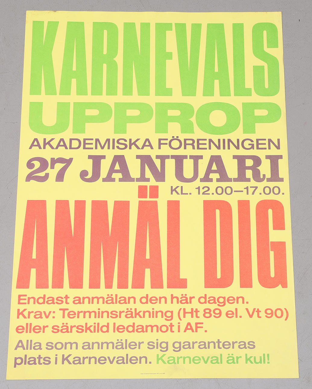 4275193. CARNIVAL PROGRAM LUND 1920-2006 AND CARNIVAL POSTER 1946-2010.