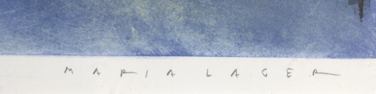 MARIA LAGER. Lithograph, 58/190, composition with house, signed.