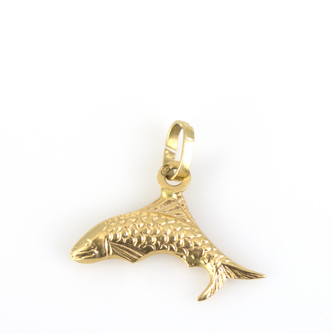4276196. PENDANTS, 2 pcs. gold 18k, seashell camel and fish charm.
