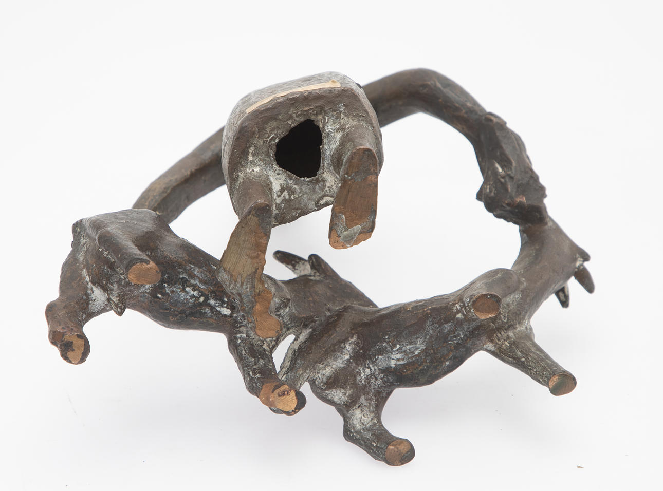 Hubert Nikolaus Lang (1909-1972), goatheress, bronze with brownish patina, with old adhesive label on the back, barely perceptibly typographically inscribed 'Hubert Lang, 'height ca. 23.5 cm, width approx. 22 cm