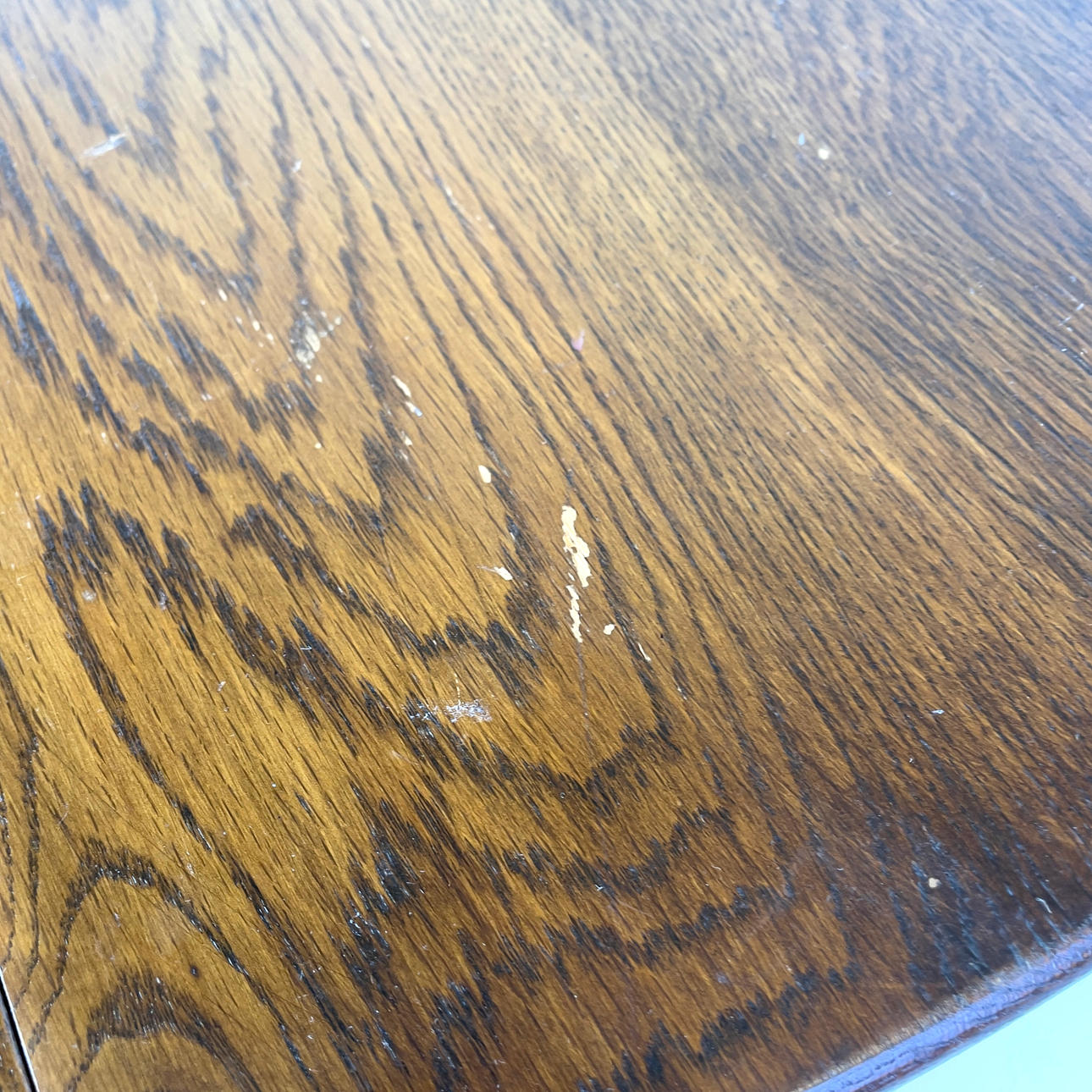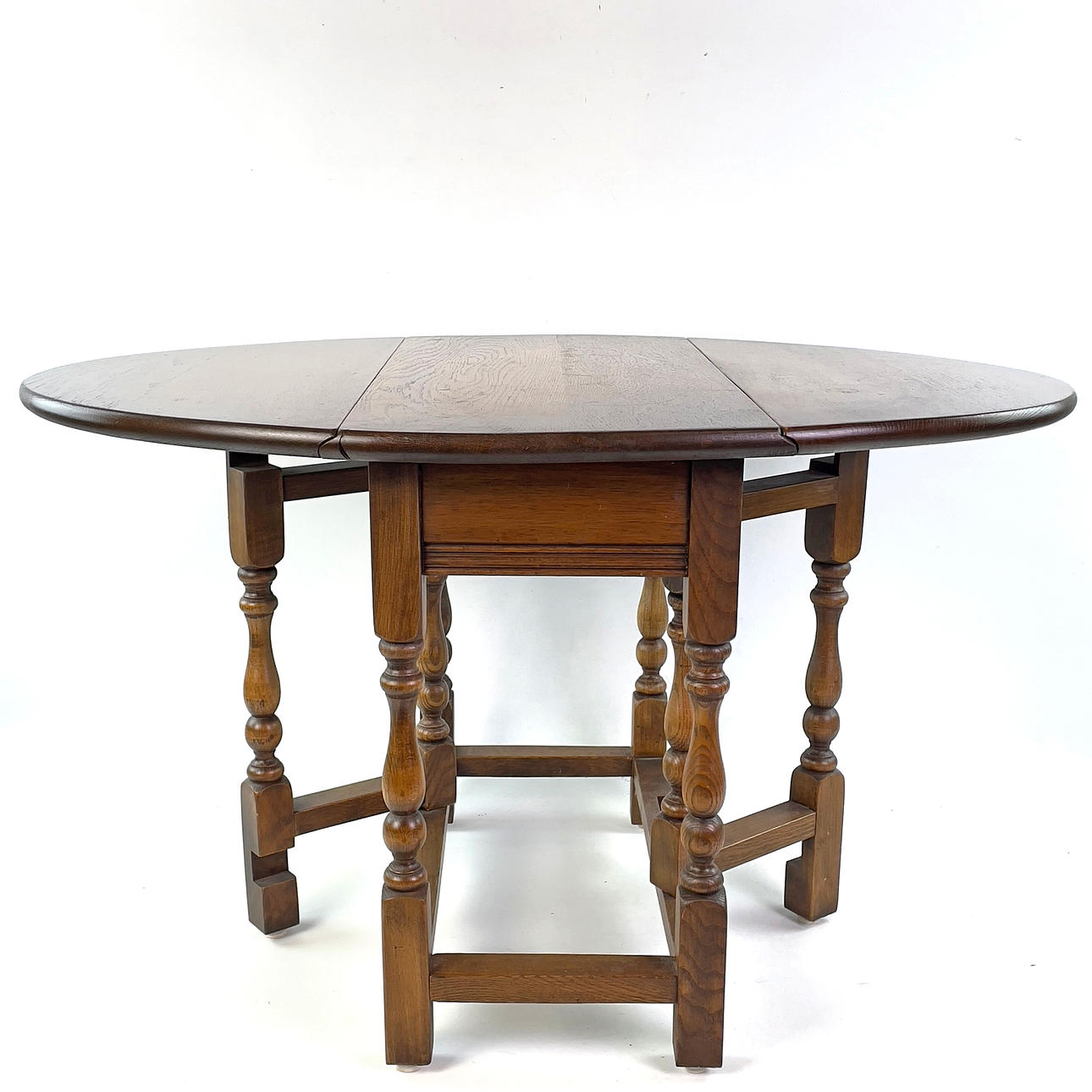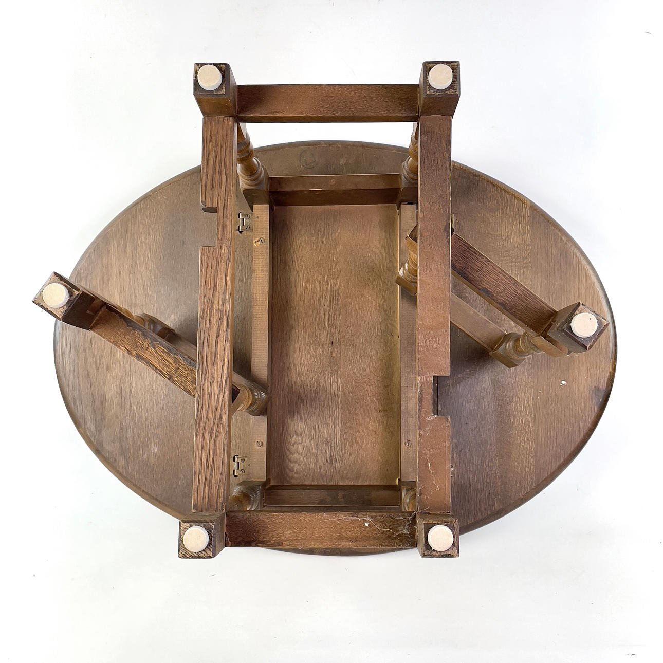 Oval coffee table in flap model. Wood, cut decor. Unfolded: 81 x 60, height 49 cm. Folded: 31x60 cm.