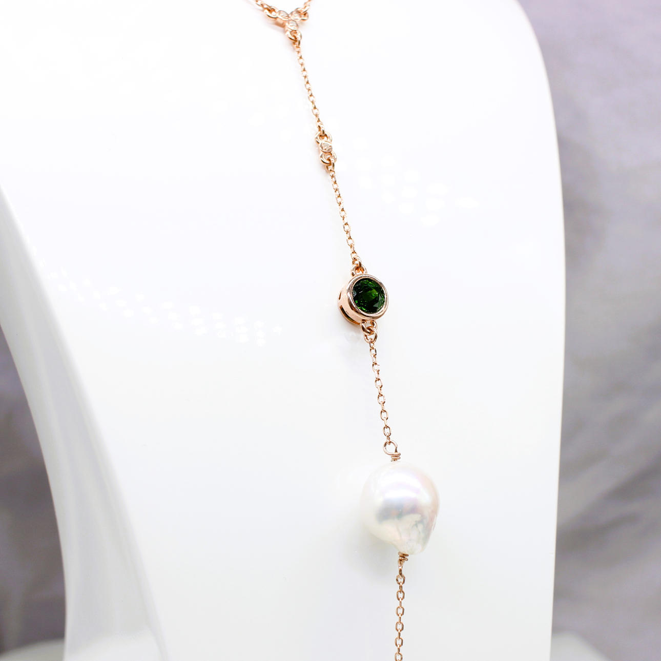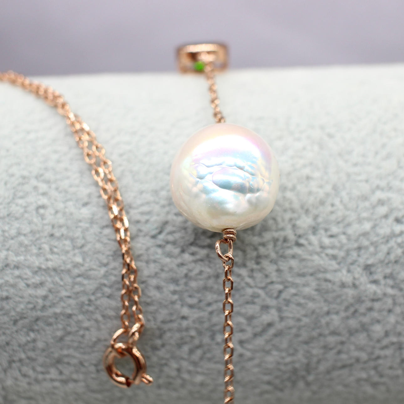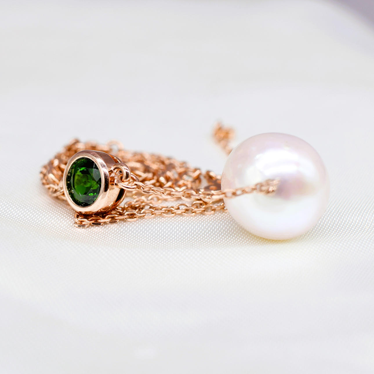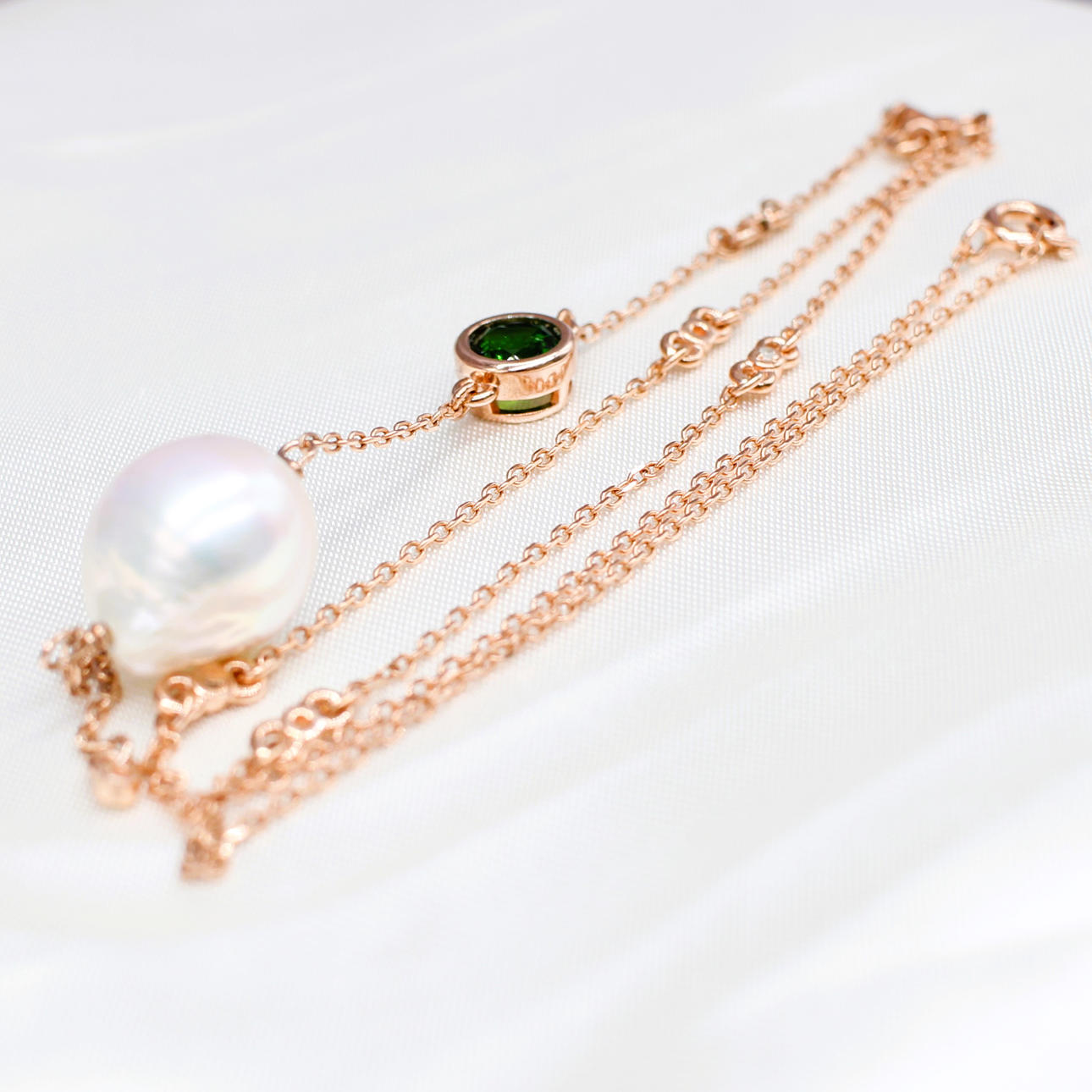 A 13 CM Drop From The Necklace And Features A Green Solitaire Above