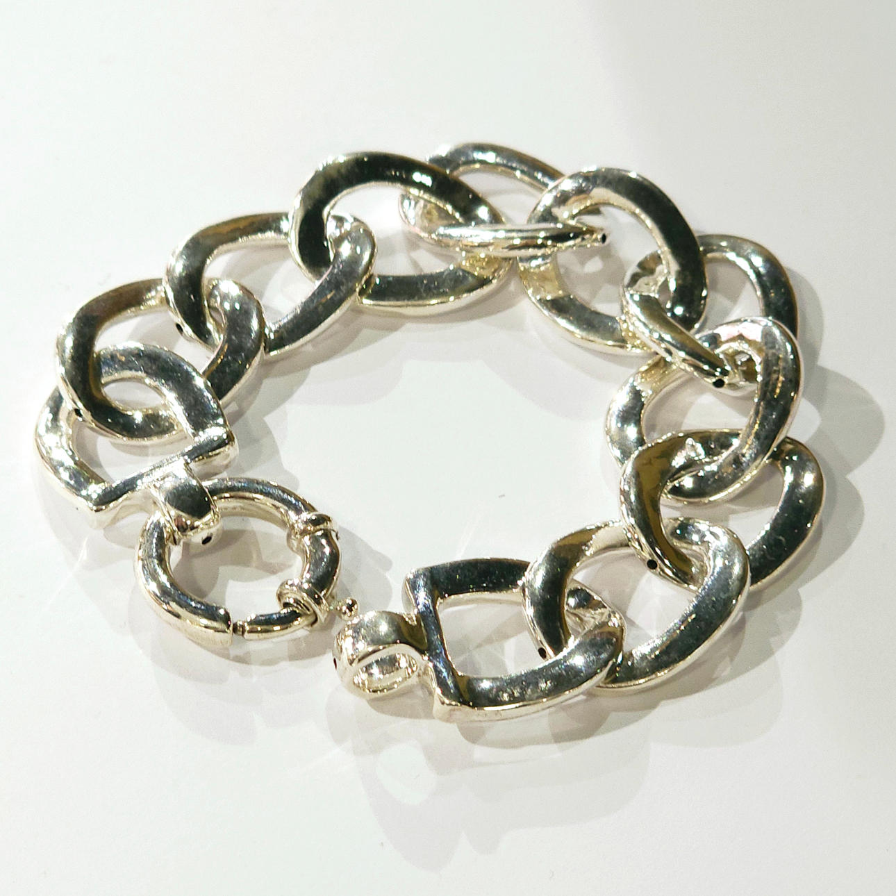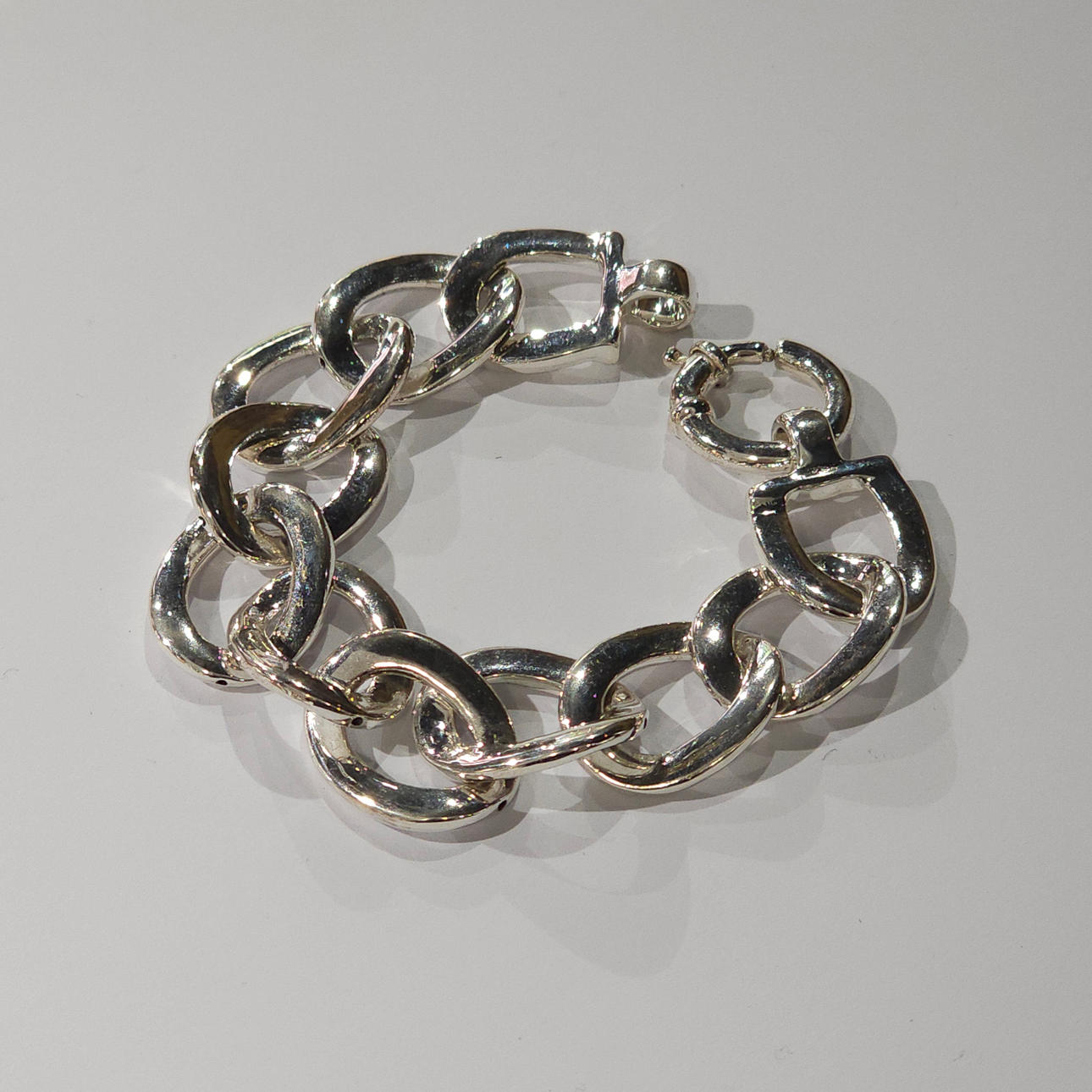 Silver link chain bracelet.