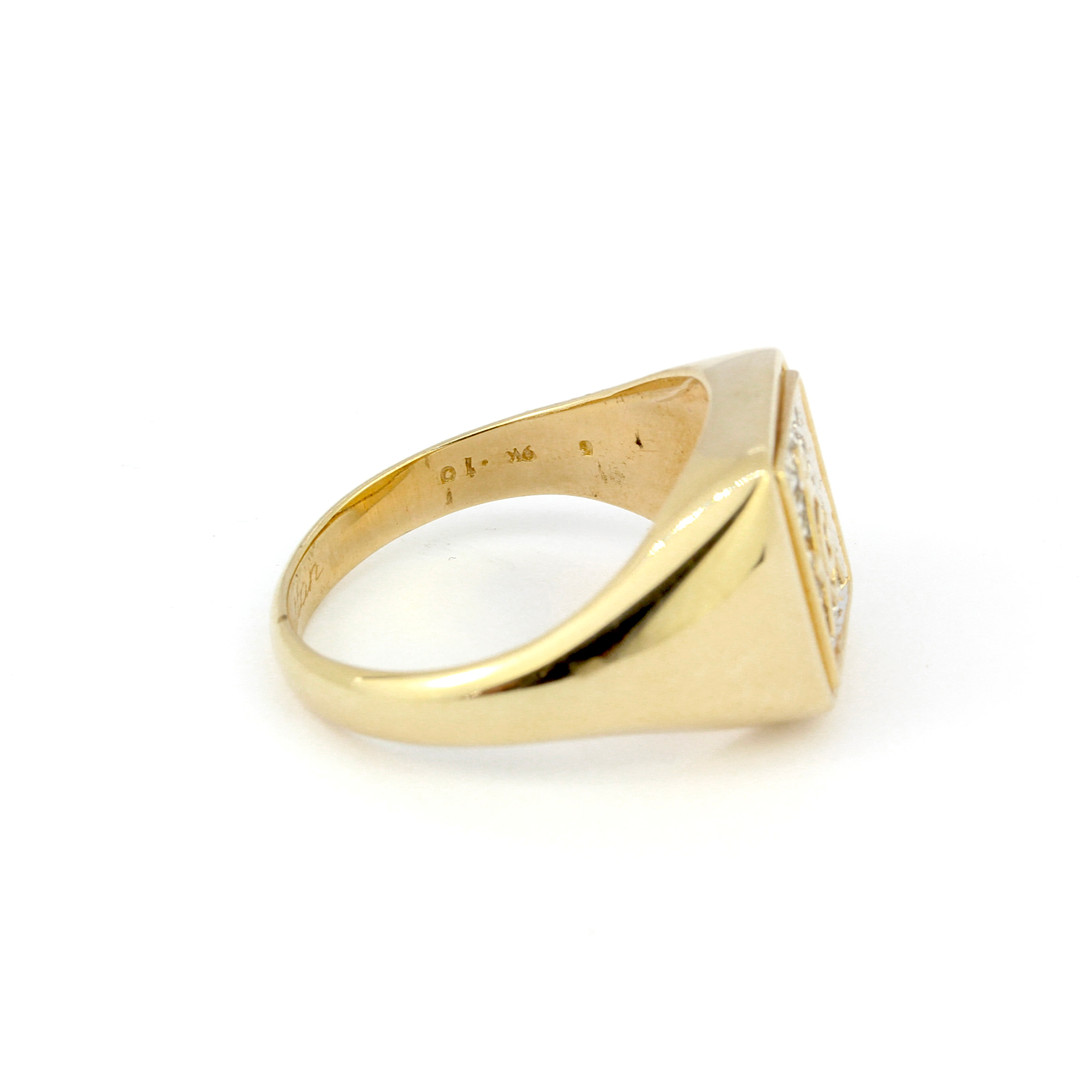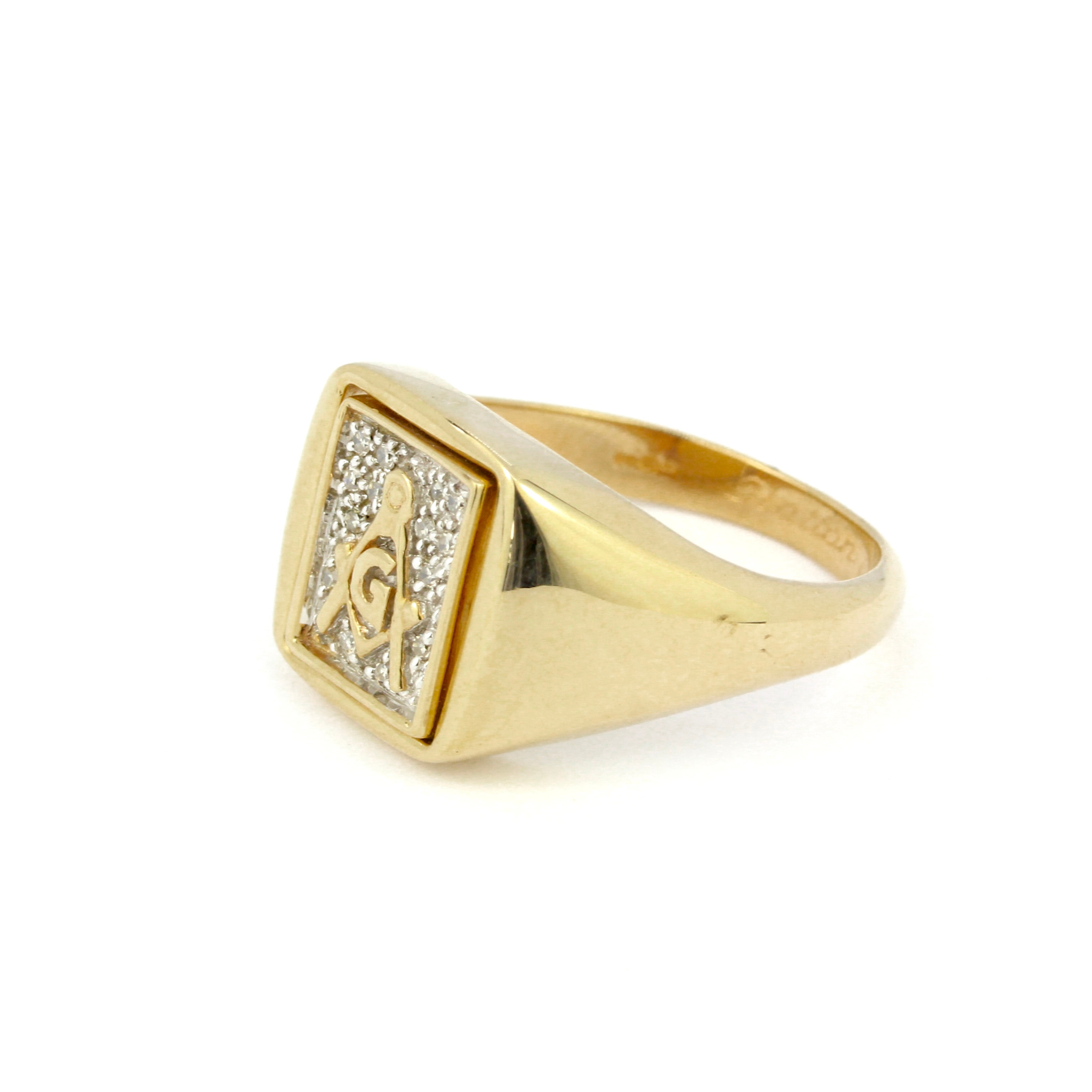 4280089. MASONIC 9CT YELLOW GOLD DIAMOND SET RING.
