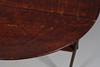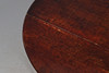 A drop flap side table, with a stained wooden top and shelf underneath, supported on metal hinges and legs, and with wooden feet. With a makers name underneath, possibly 'C K N S Wales'. Extended, 91cms by 91cms.