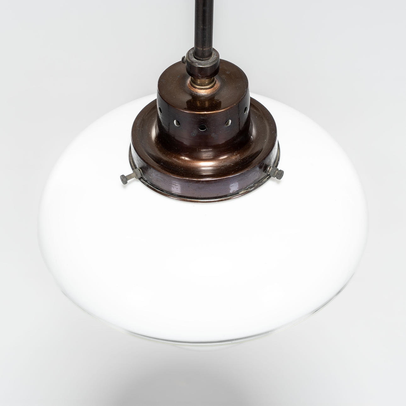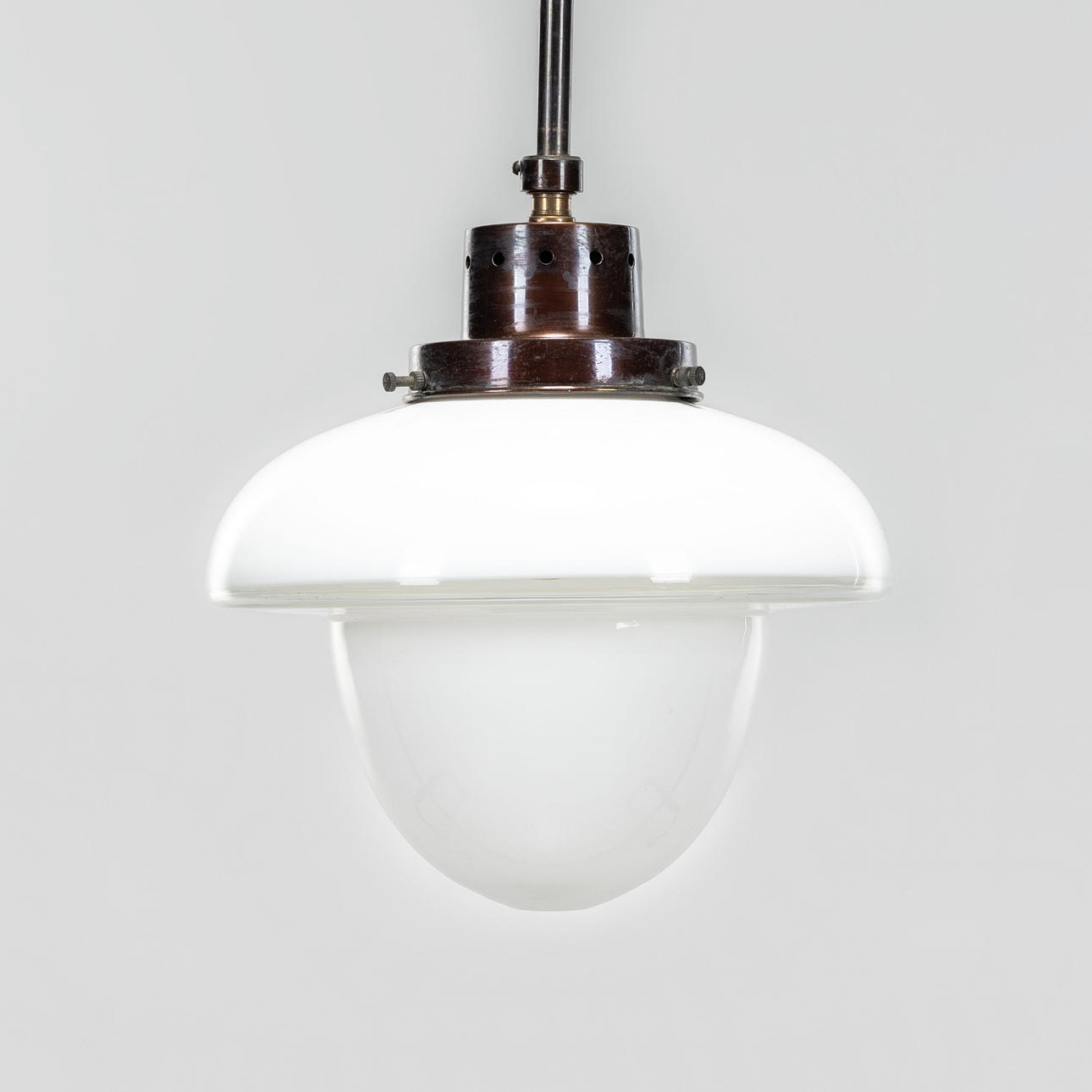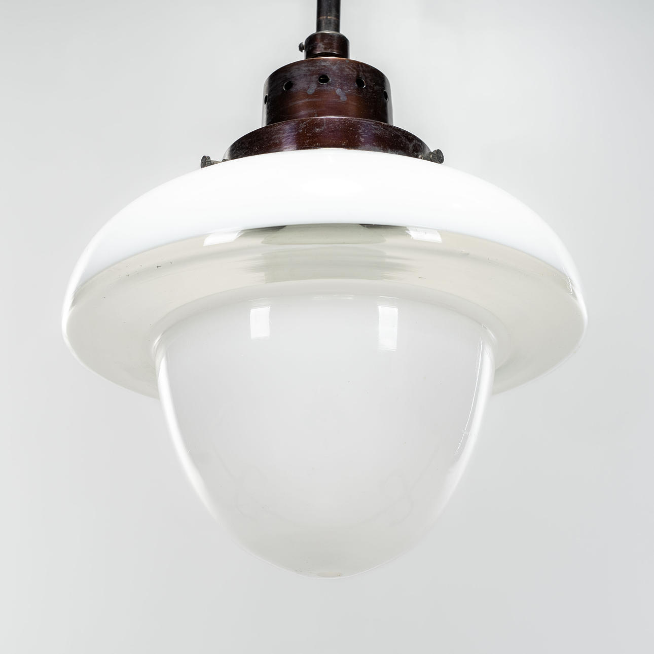 Lampshade in white opal glass and clear glass, metal frame
