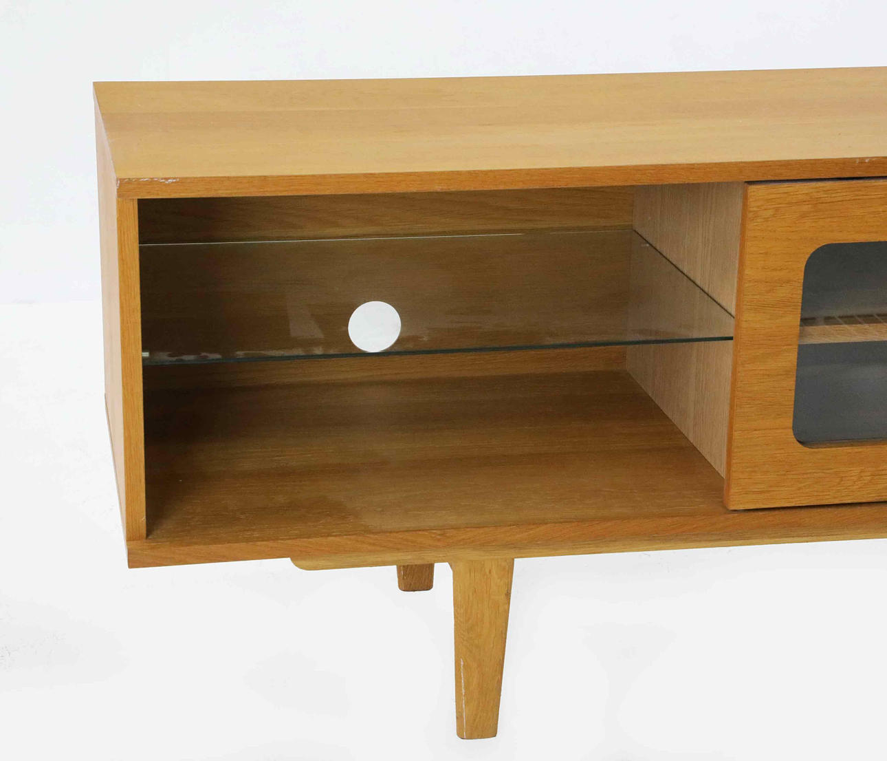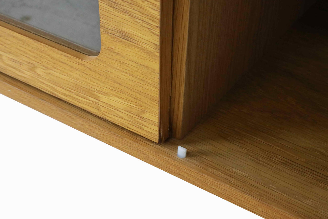 Normal wear and tear, missing track strip to one door, as well as door stops on both. There are veneer damage, marks.