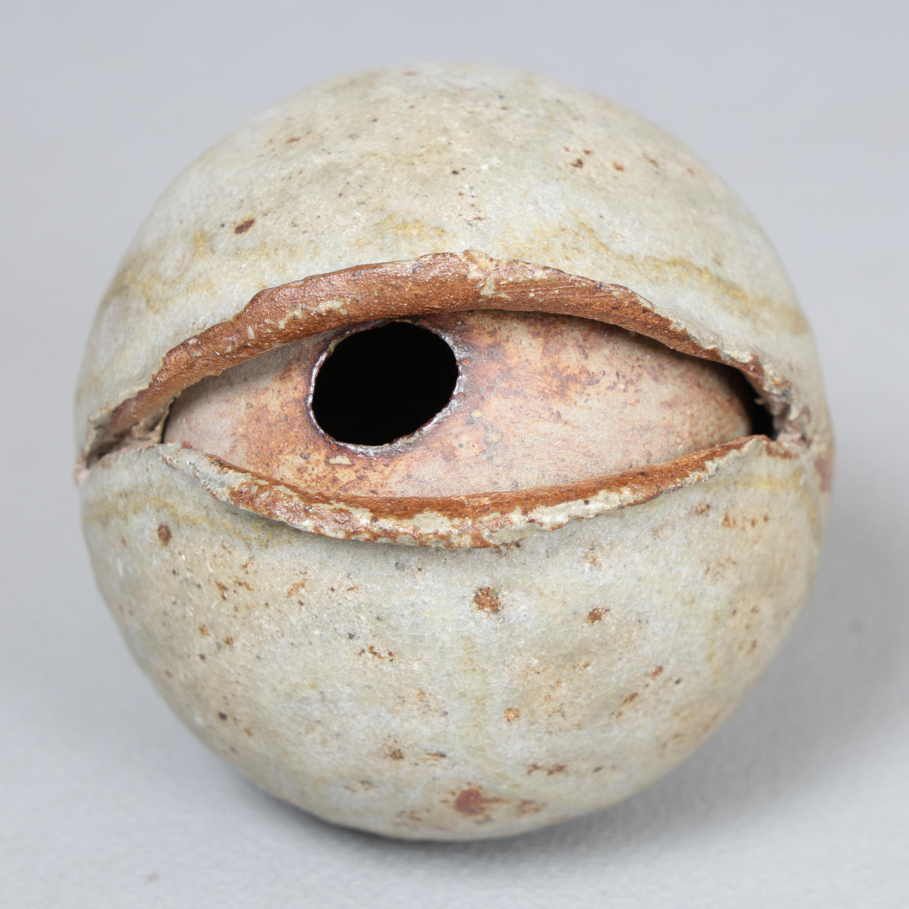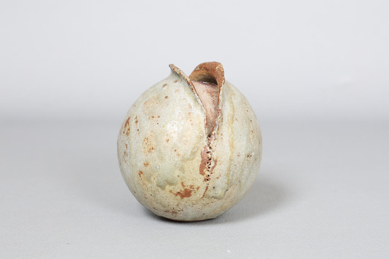 ALAN WALLWORK (1931-2019), A STONEWARE SPLIT SEED FORM VESSEL.