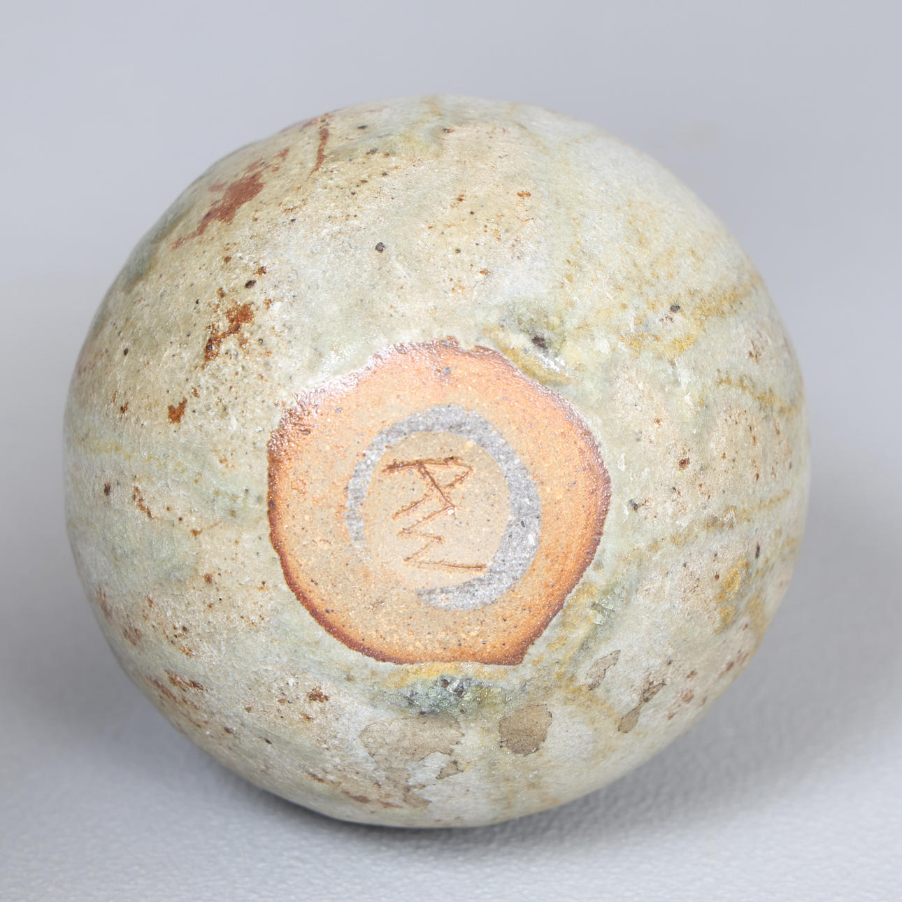 In a green glaze, initialled to base, 9.5cm tall.