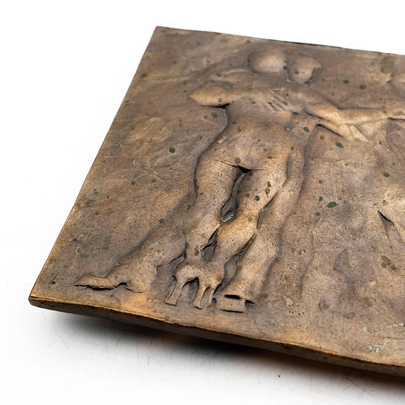 Cast bronze wall plate with dancing couple in relief