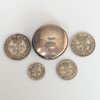 the coins all dated 1831 from 1d-4d together a silver pill box hallmarked Birmingham 1909.