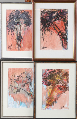 RAGNAR LINDÉN. Figure compositions, 3 pieces, mixed media on paper, signed, dated -55.