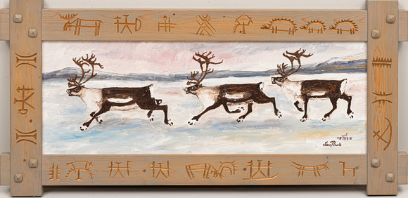 4282308. OLOF GRAFSTRÖM. Oil on canvas, “Landscape with Sami & Reindeer” Signed & dated 1882.