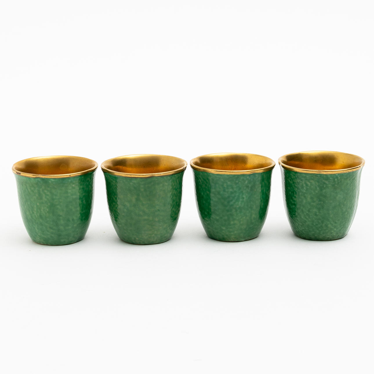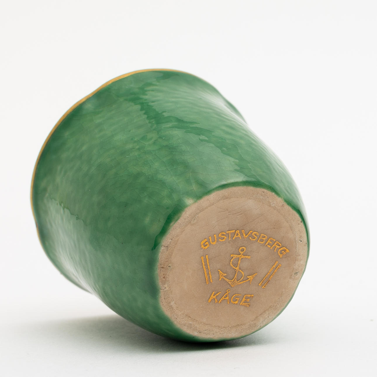 4282344. WILHELM KÅGE. 6 pieces, Swedish Grace, green-glazed flintware, partly signed, dated 1927.