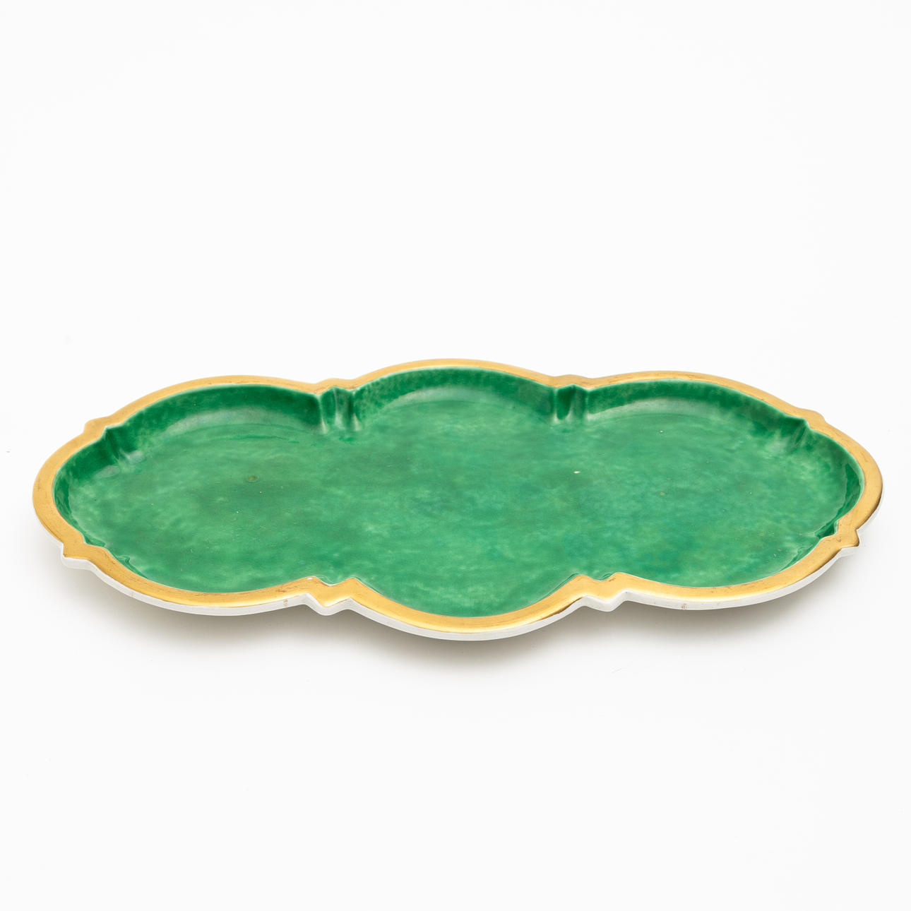Tray in contoured shape, signed and dated, approx. 27 x 15 cm.