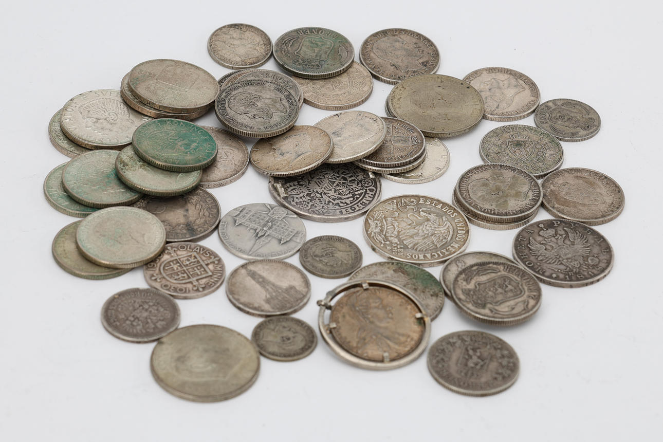 90% silver, approx. 61 grams About 80% silver, about 339 grams 72% silver, about 39 grams 60% silver, about 10 grams 40% silver, 156 grams