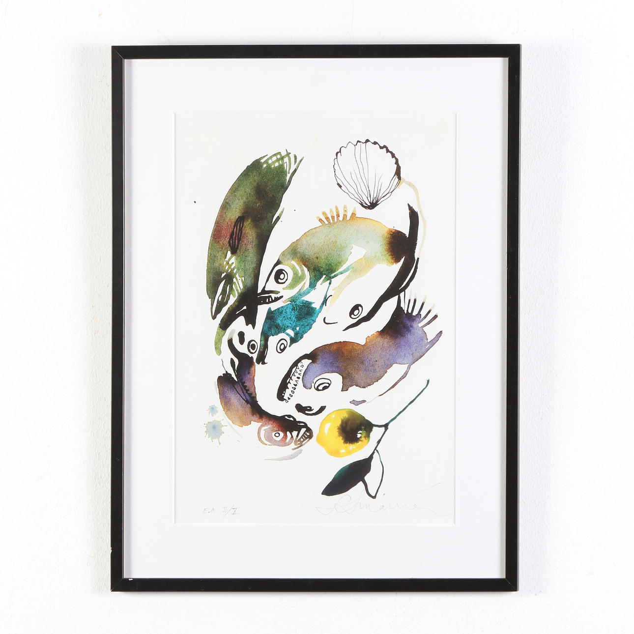 4284090. STINA WIRSÉN. Giclée, EA II/X. Composition with fish. Signed.