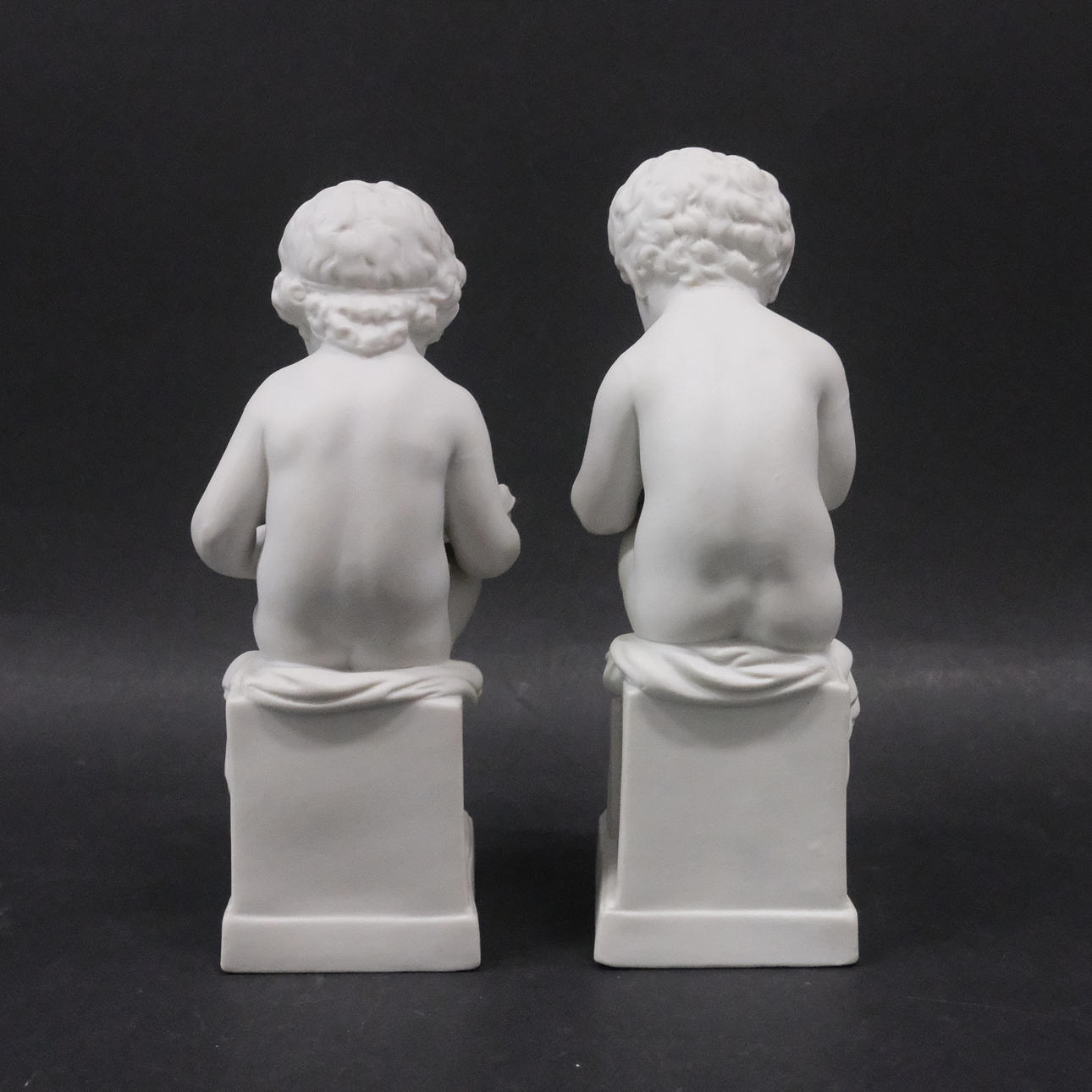 Bisque porcelain, in the form of children reading and writing, circa 1900, height 18 cm.