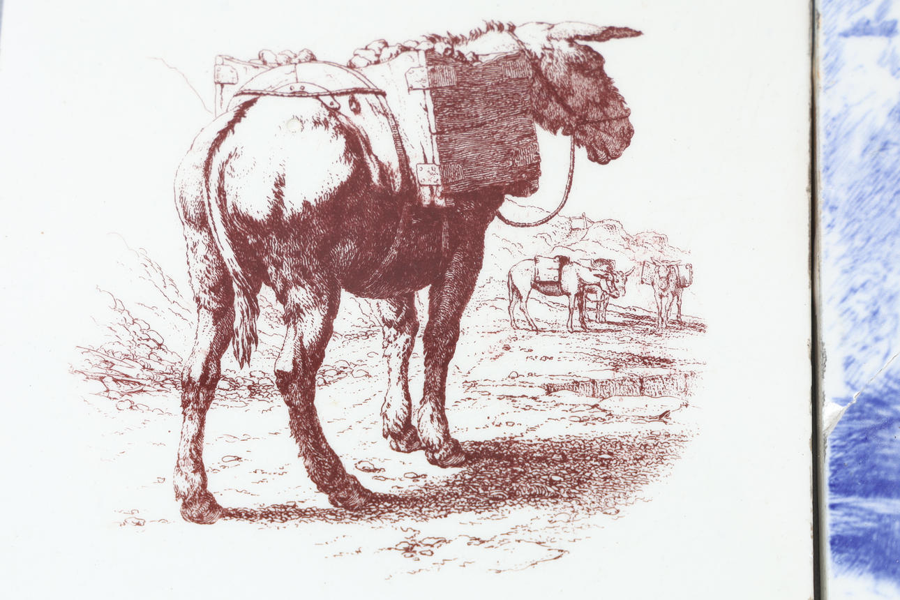To include a sailor boy, another of two perched Kingfishers, another of a dog lying down, a stag, a donkey, a turkey etc., 15cm square (9).