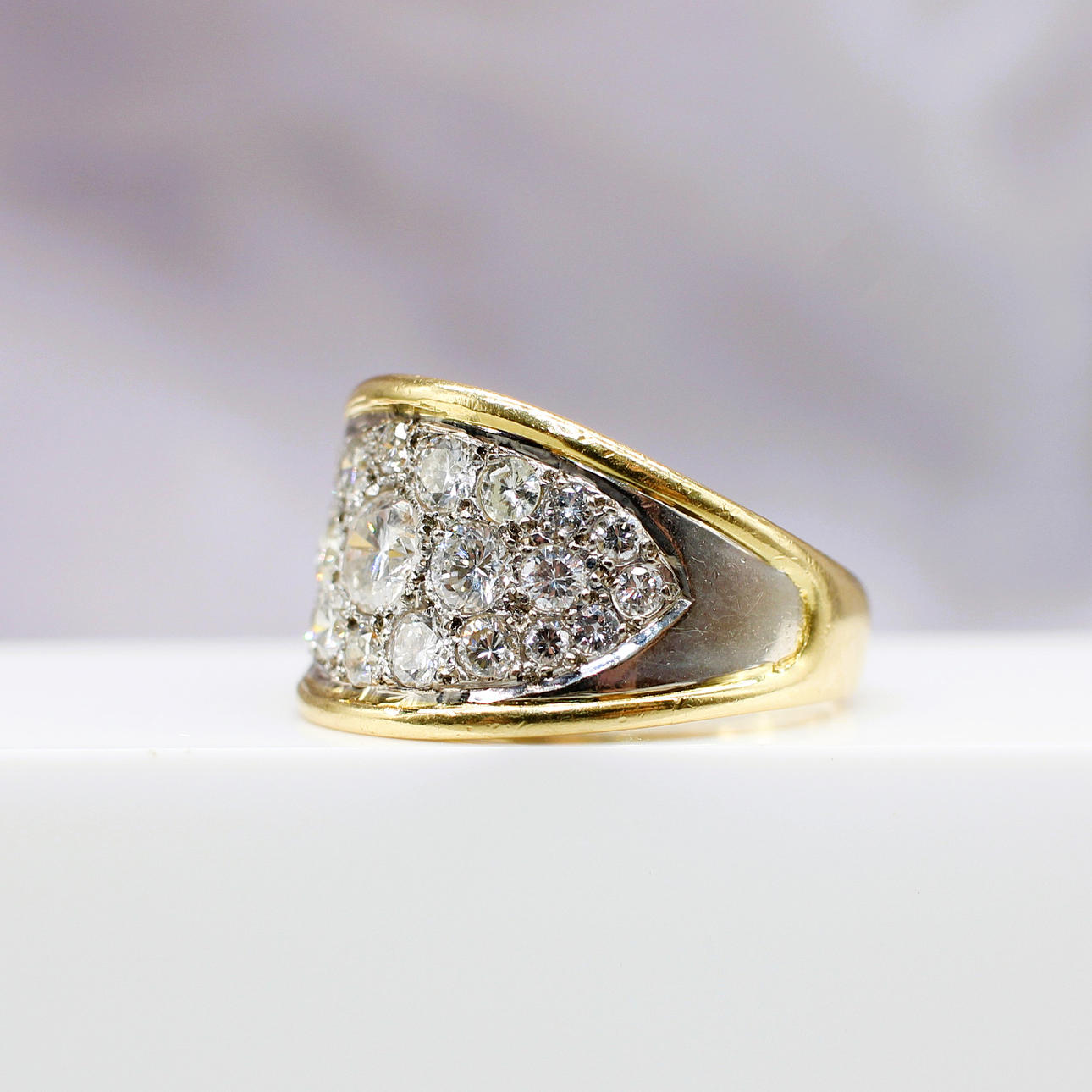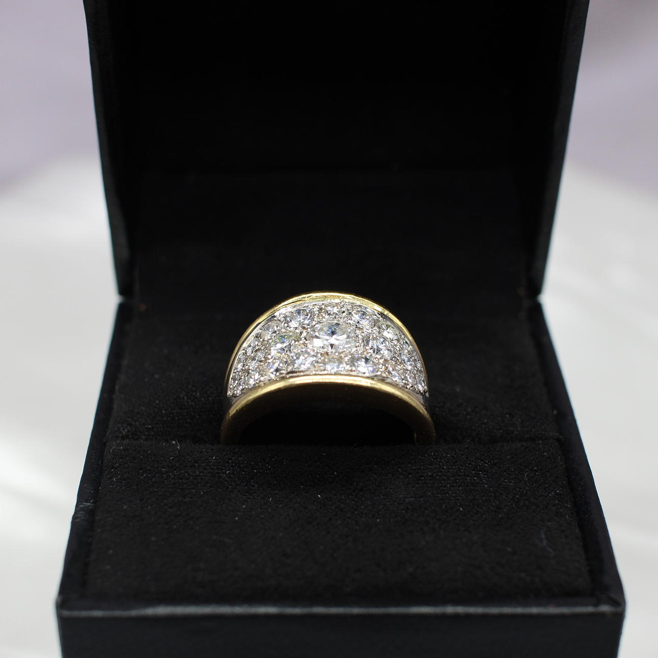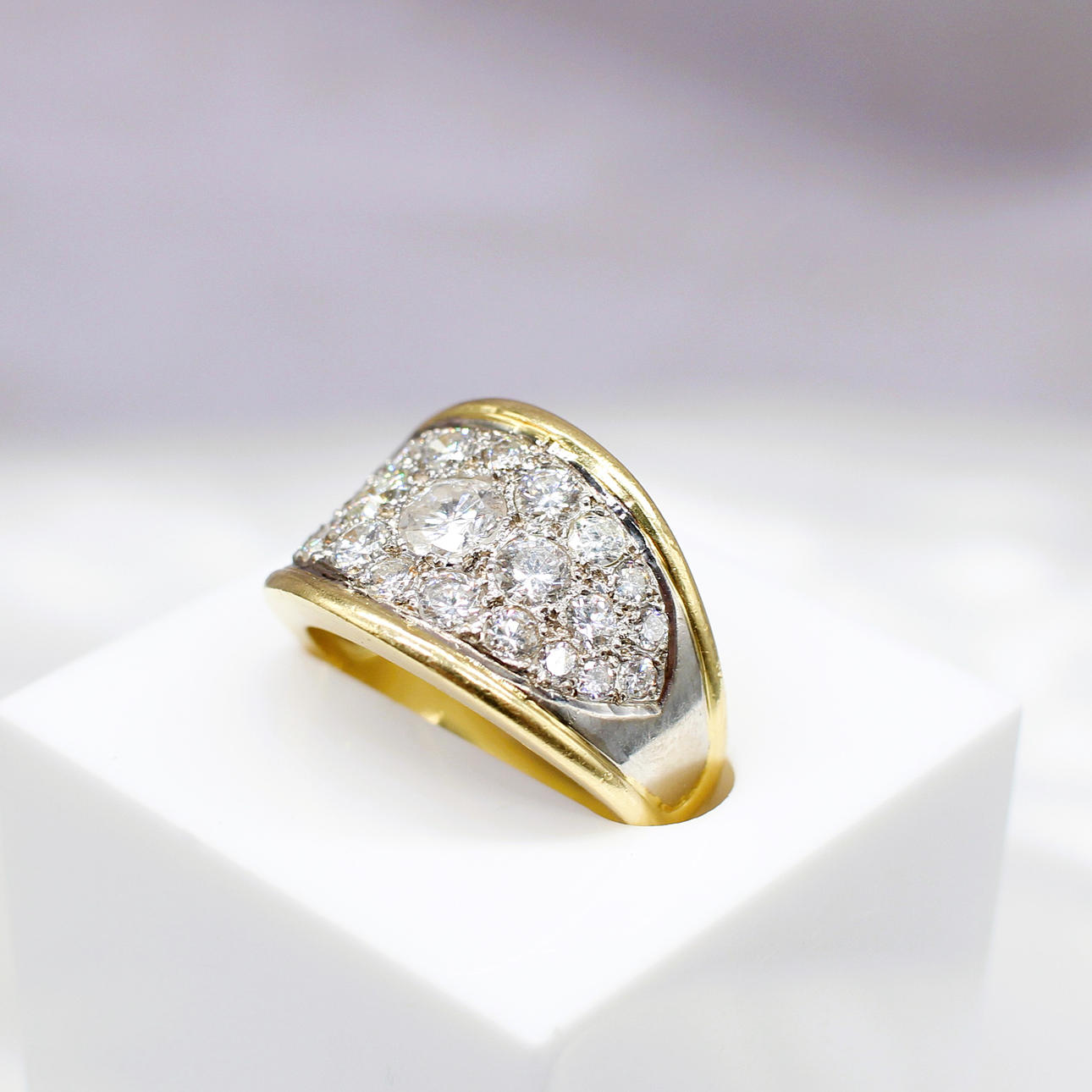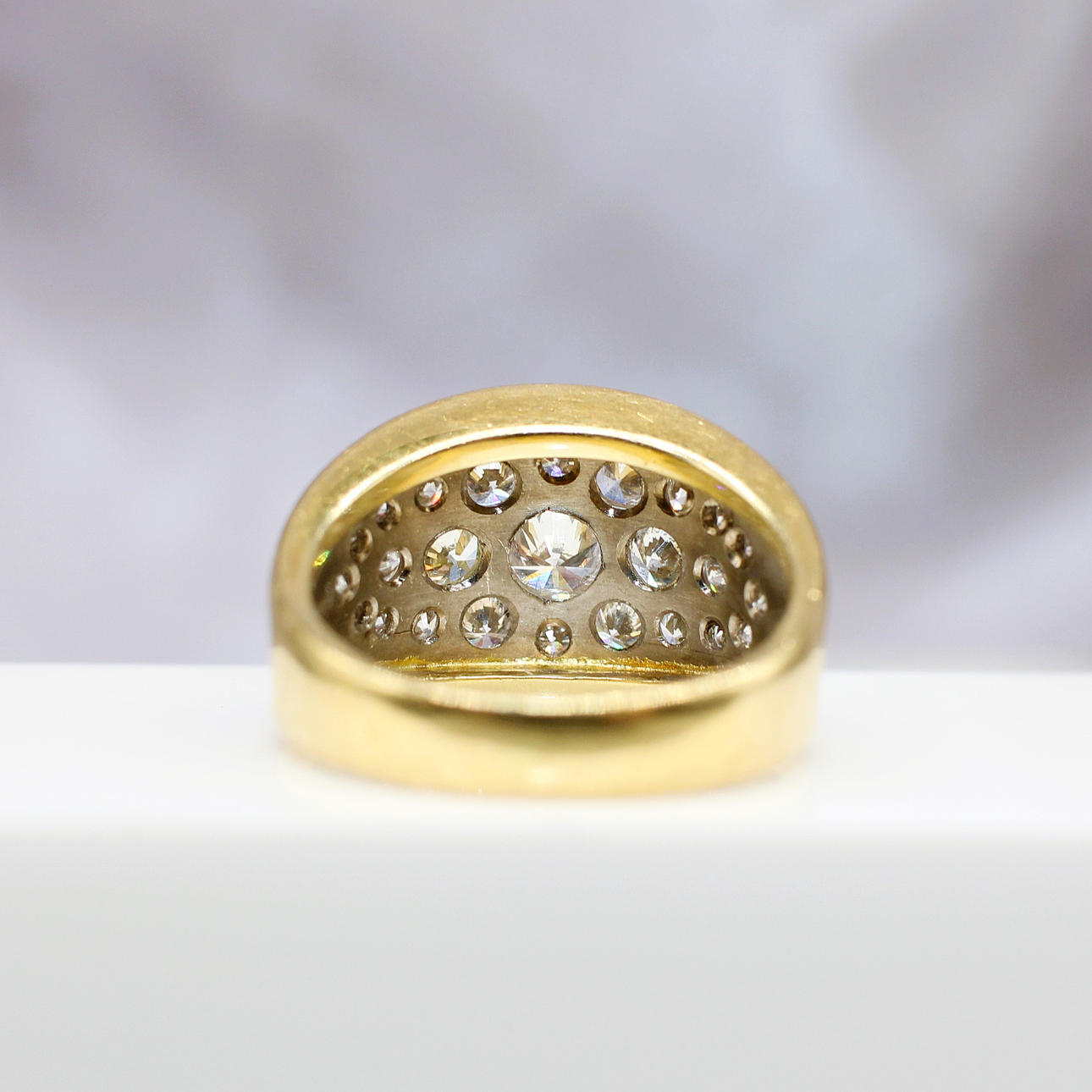 A Statement 18ct Yellow Gold Ring Set With A Cluster Of 25 Graduated Round, Brilliant Cut Diamonds.