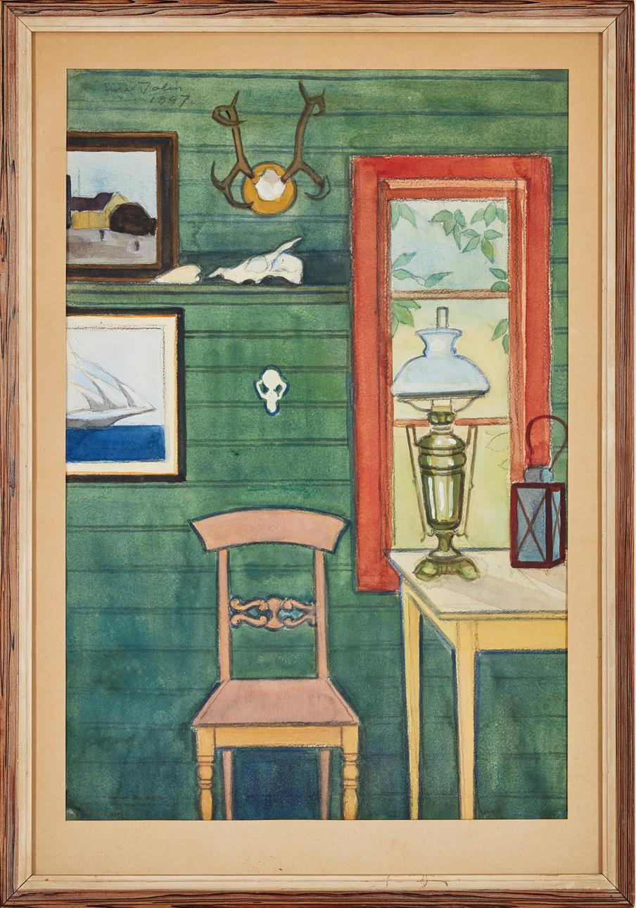 4286591. EINAR JOLIN. Interior still life, watercolour and chalk, signed and dated 1947.