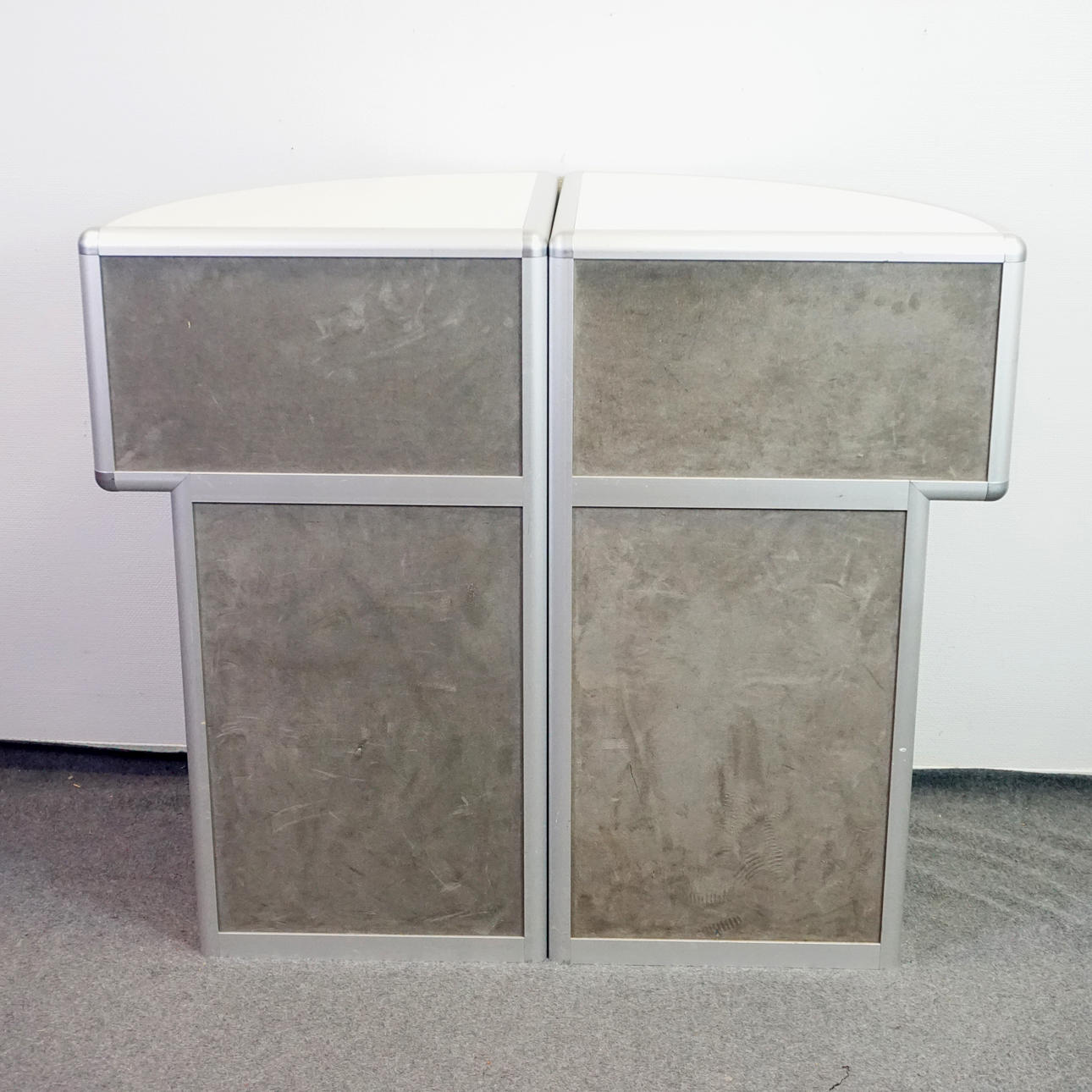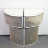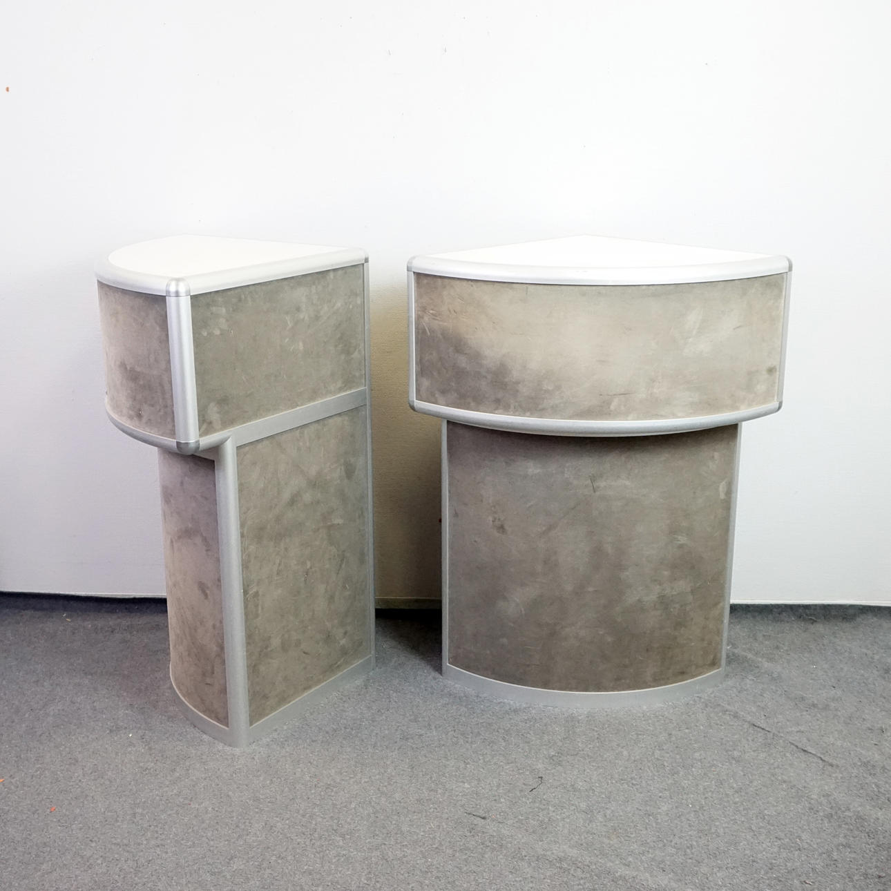 Rounded exhibition table/stand table, 2 pcs modules. Dressed in brown velor. Height 104 cm, width 60 cm, depth 60 cm.