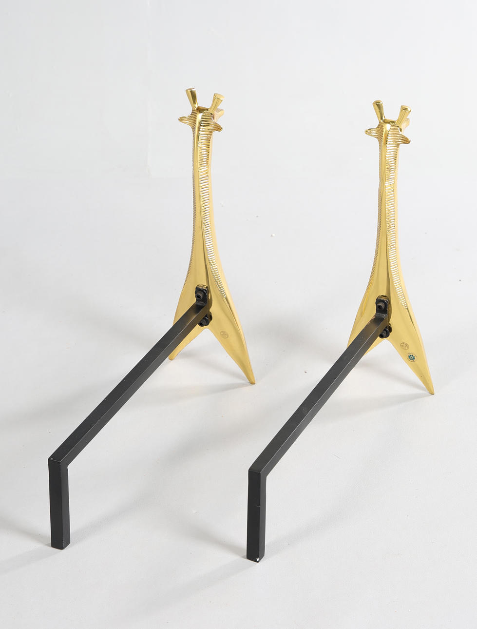 JONATHAN ADLER (B. 1966). BRASS GIRAFFE ANDIRONS (2).