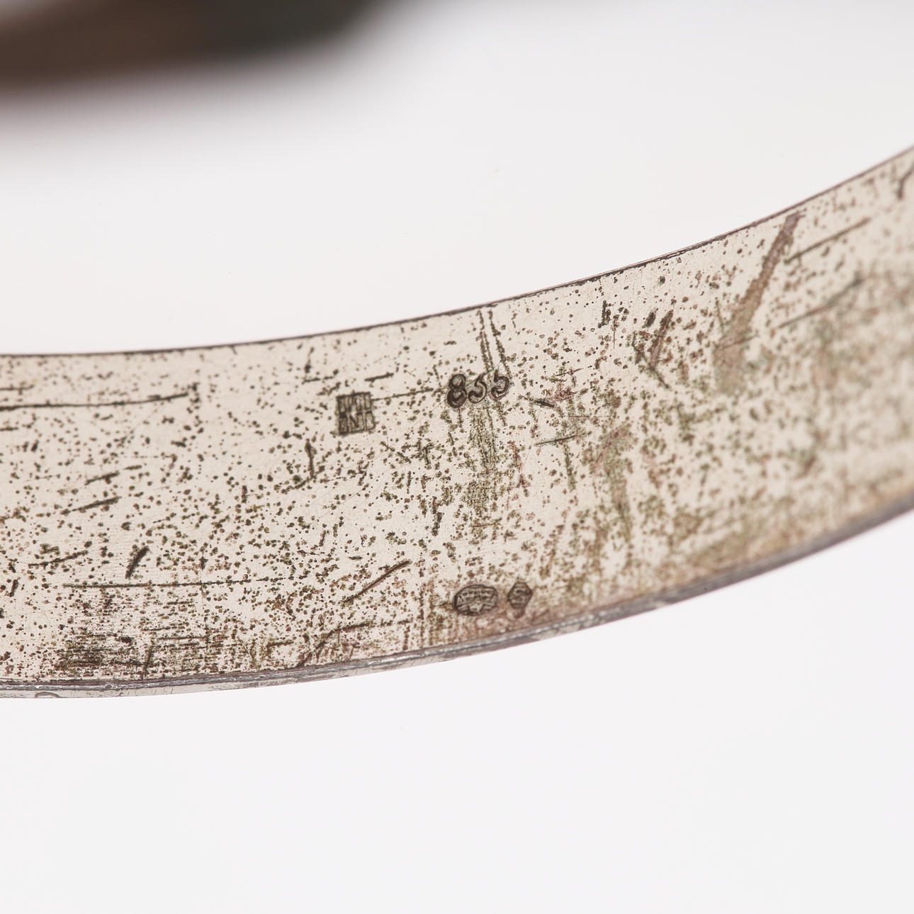 A pewter/ silver bangle.