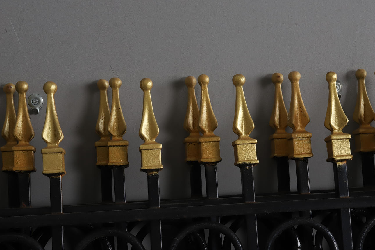 Missing top pieces in some places, surface rust and scratch marks may occur.