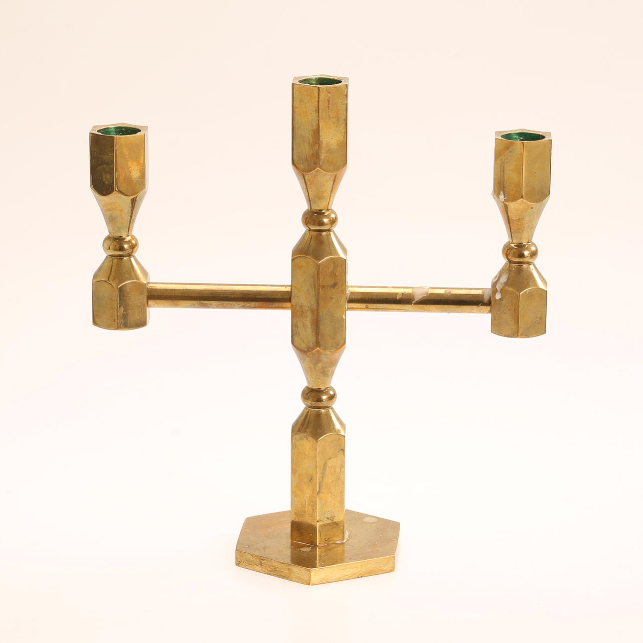 Candelabra, metal work Gusum, height approx. 24 cm. Candlesticks a pair, height approx. 23,5 cm. 2 candlesticks and caskets.