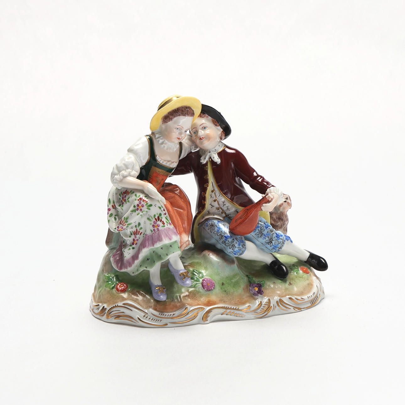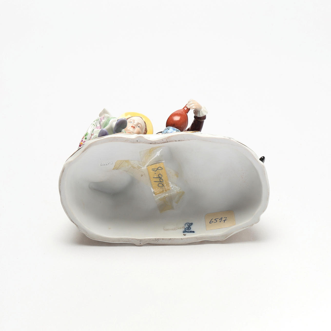 Normal wear and tear. The top of the instrument on the Dresden figurine is off, but included.