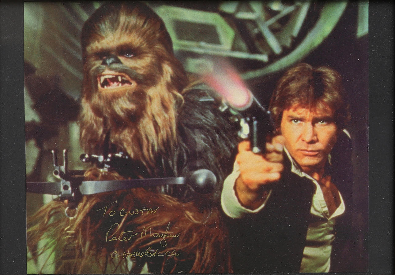 AUTOGRAPH. STAR WARS. PETER MAYHEW WHO PLAYED CHEWBACCA, with dedication.